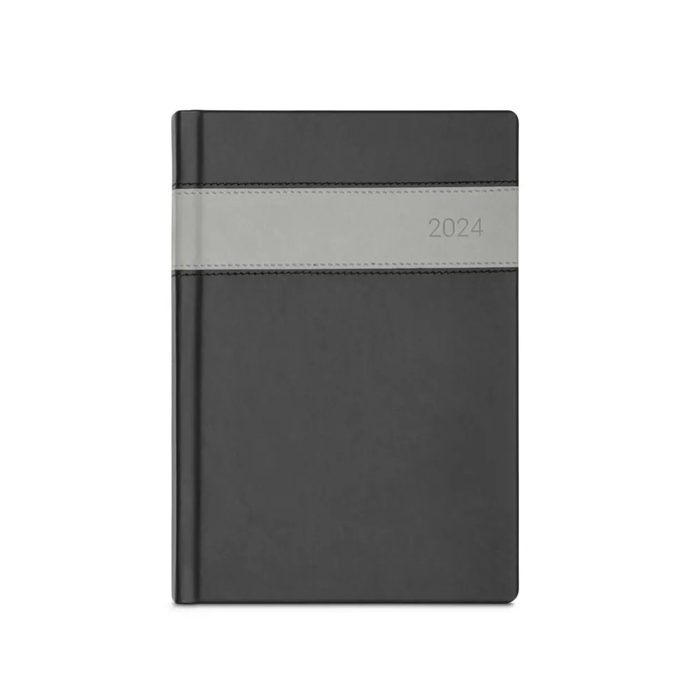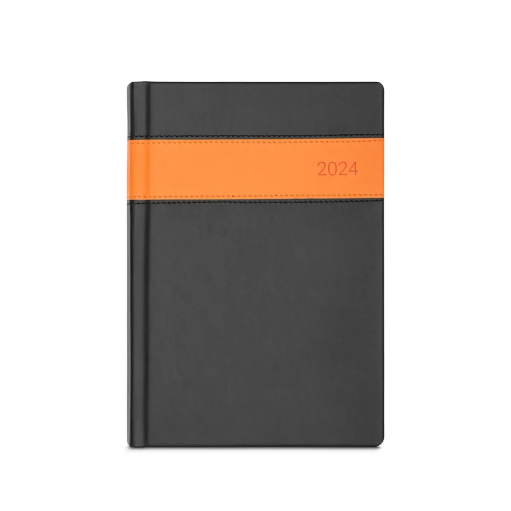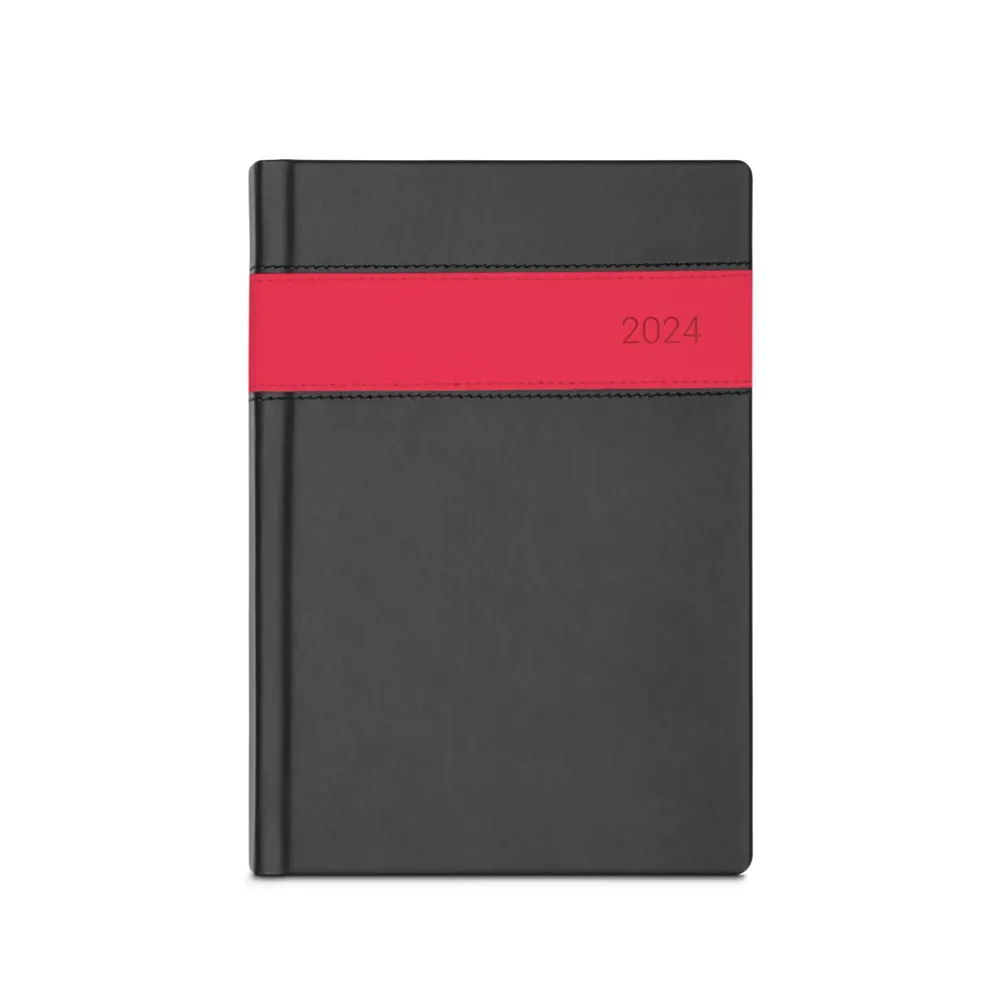 Agenda A5 em PU com marcador em fita. Está organizada num plano diário. 148 x 210 mm