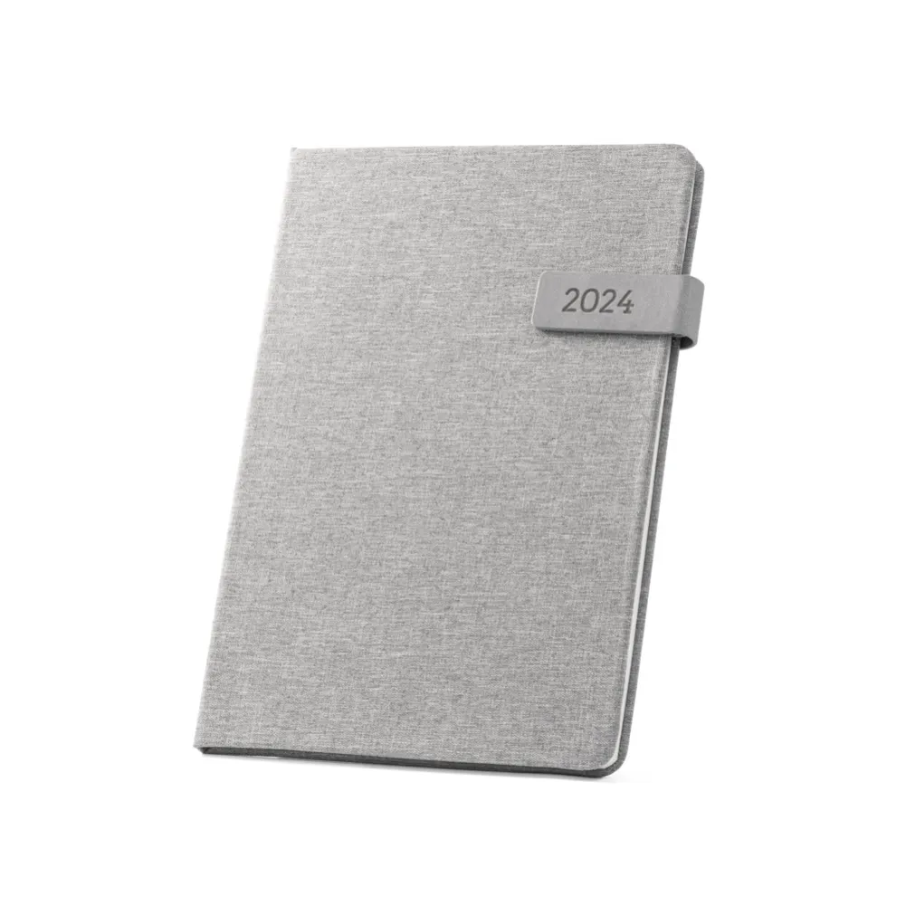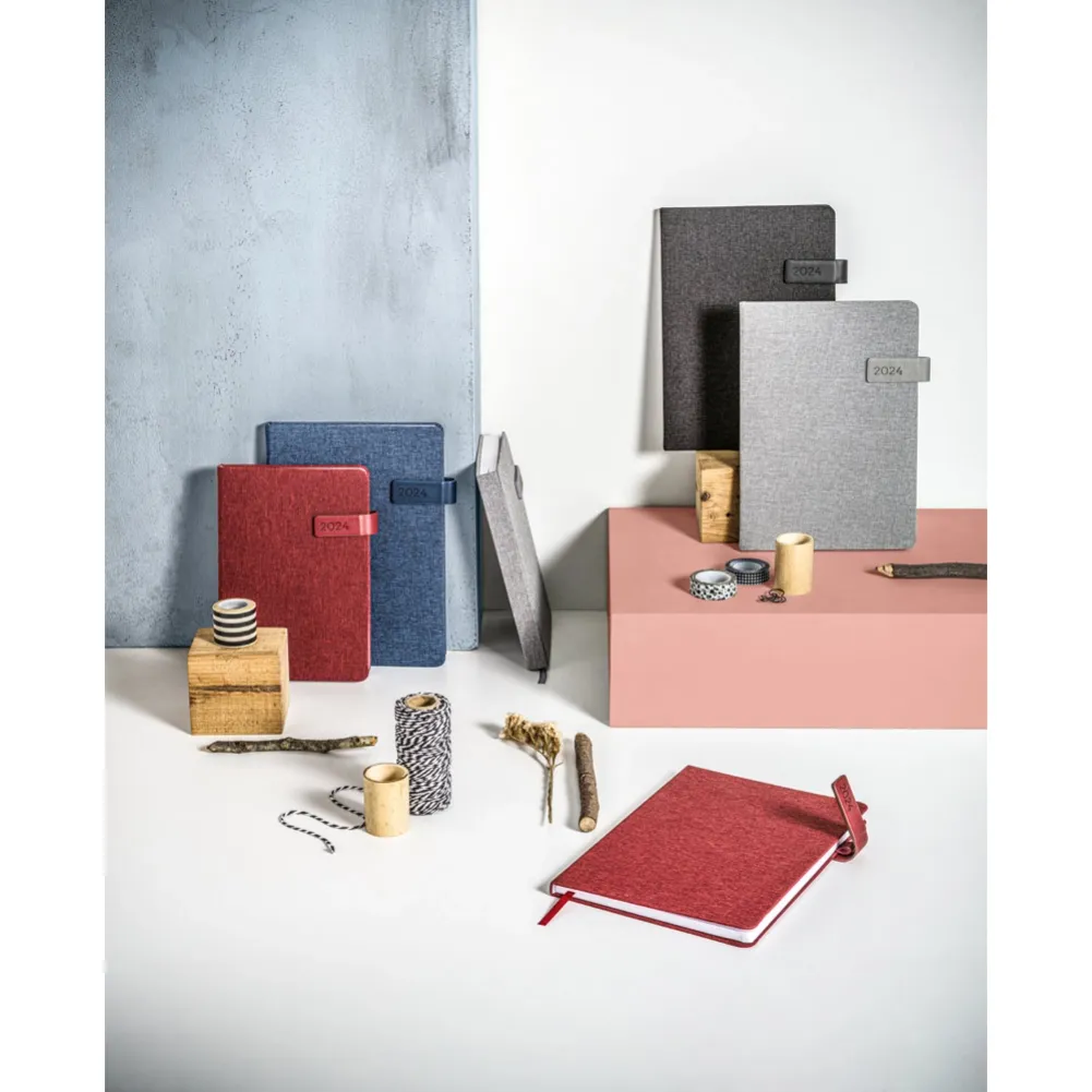 Agenda B5 em rPETem rPET com fecho magnético em PU, marcador em fita e suporte para esferográfica (não incluída). Está organizada num plano semanal. Fornecida com bolsa de non-woven. 175 x 245 mm | Bolsa: 220 x 270 mm