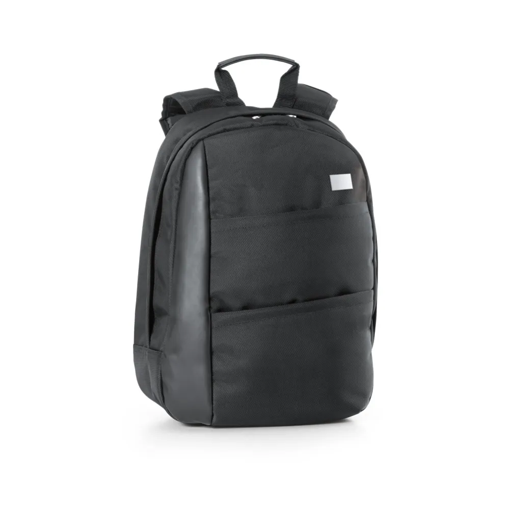 Mochila para notebook em c.sintético. Compartimento com divisória almofadada para notebook até 156. Interior forrado e almofadado. Contém diversos bolsos interiores. A mochila tem 2 bolsos frontais e uma placa personalizável. A parte posterior é almofadada e tem sistema de apoio acolchoado para as costas e alças almofadadas. 340 x 450 x 130 mm | Placa: 40 x 20 mm