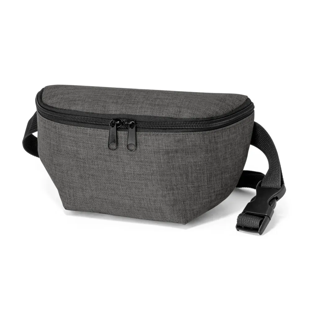 Pochete em 600D de alta densidade. Compartimento principal e um zíper na parte posterior. A bolsa tem alça ajustável em webbing. 220 x 120 mm