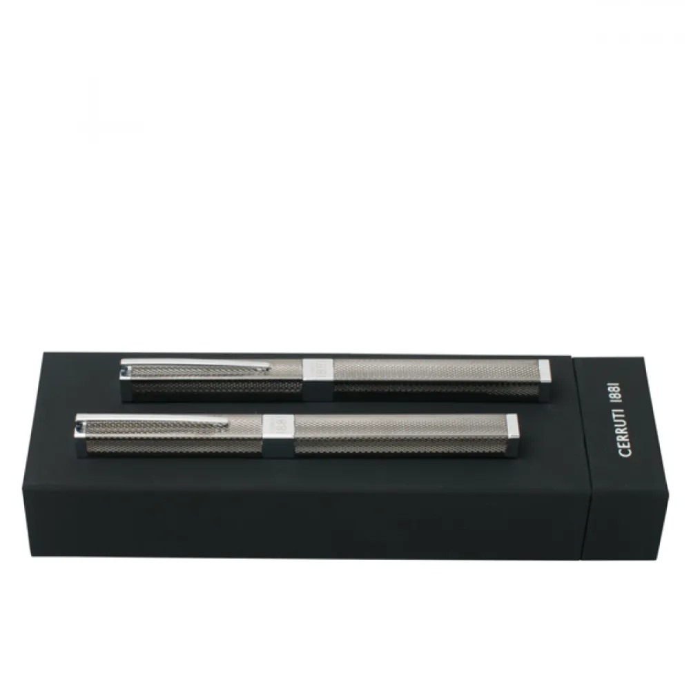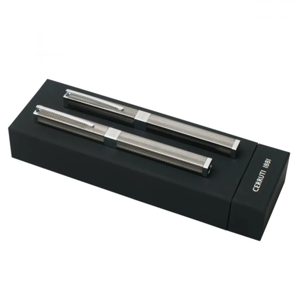 Caneta tinteiro: escrita a azul. Roller: escrita a preto. Fornecido em estojo de oferta. 10 x 10 x 143 mm. Estojo: 213 x 72 x 41 mm |