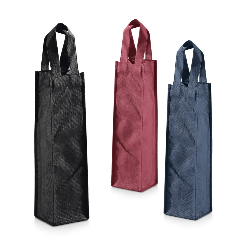 Sacola para 1 garrafa em non-woven (80 g/m²) com alças. 100 x 330 x 100 mm