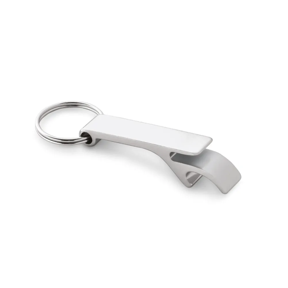 Chaveiro em alumínio com abridor de garrafas. 11 x 60 x 15 mm