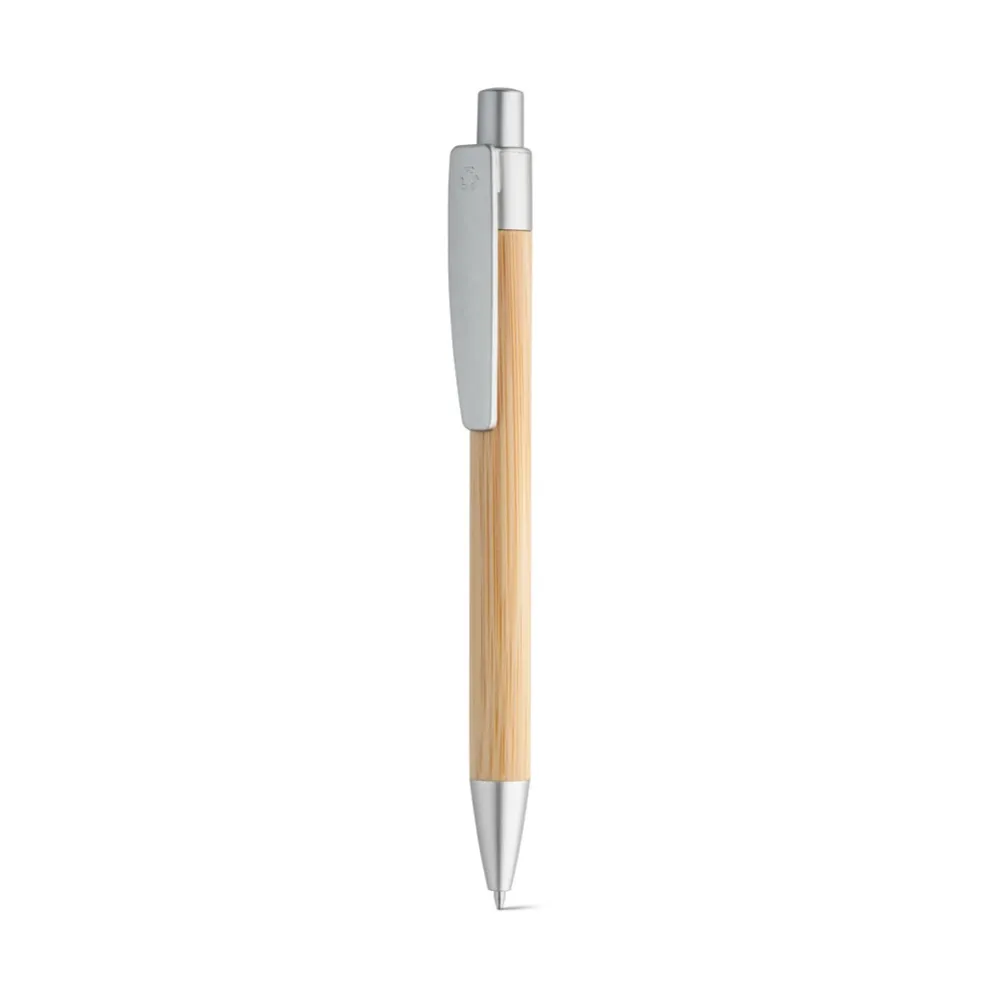 Esferográfica em bambu com clipe. Escrita a azul. ø11 x 142 mm