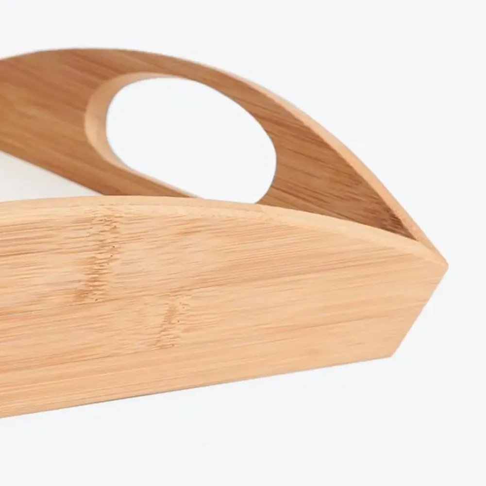 Bandeja para servir retangular em Bambu 40 cm. Tipo de gravação: Uma gravação a Laser. Dimensões do produto: 40x32x6cm Dimensões da embalagem: 400x0x60 mm (AxLxP) Peso da embalagem: 775 g Embalagem do produto: Shrink