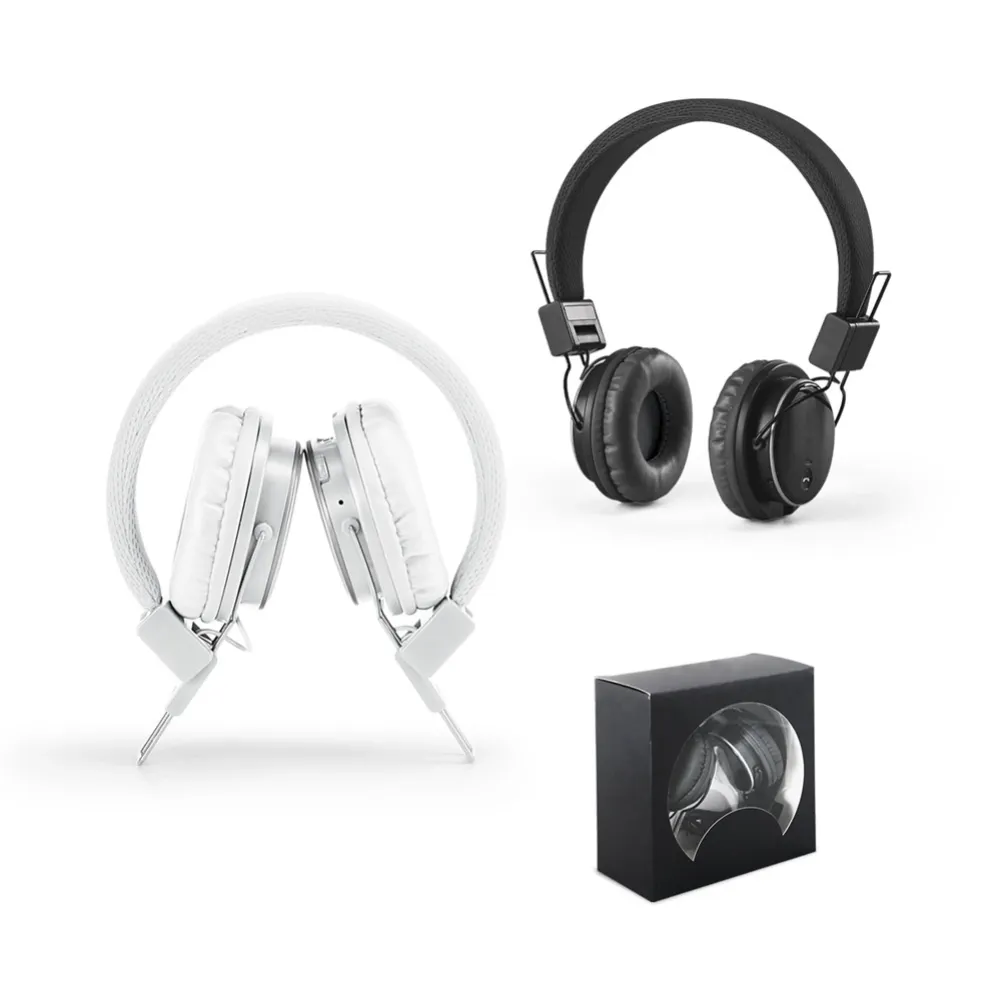 Fone de ouvido dobrável e ajustável em ABS com estrutura almofadada, transmissão sem fios BT v50 e leitor de cartões TF. Autonomia aproximada de 4 h. Função para atender chamadas, controle de volume, conexão à playlist do dispositivo móvel e rádio FM. Incluso cabo micro USB para carregar. Fornecido em caixa presente. Dobrados: 165 x 135 x 70 mm | Caixa: 150 x 150 x 70 mm