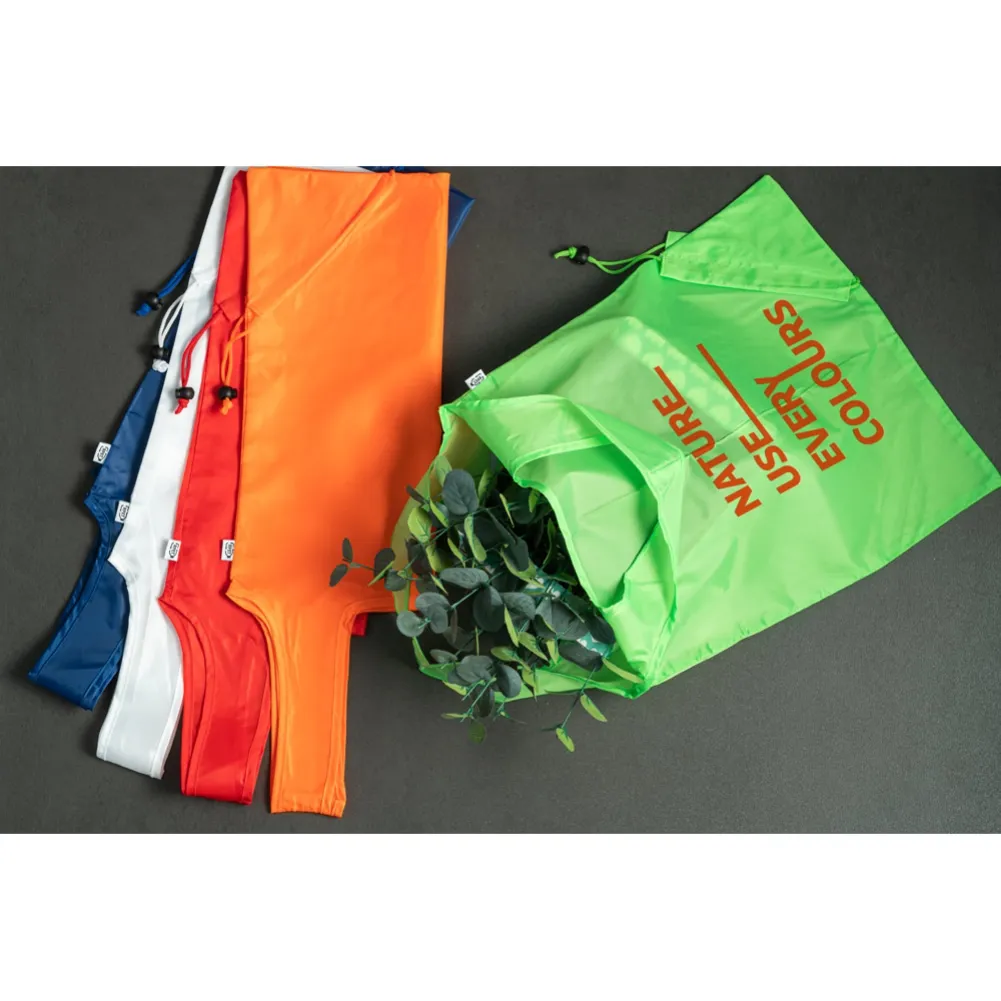 Saco dobrável em rPET 190T. Alças de 40 cm. 370 x 420 mm