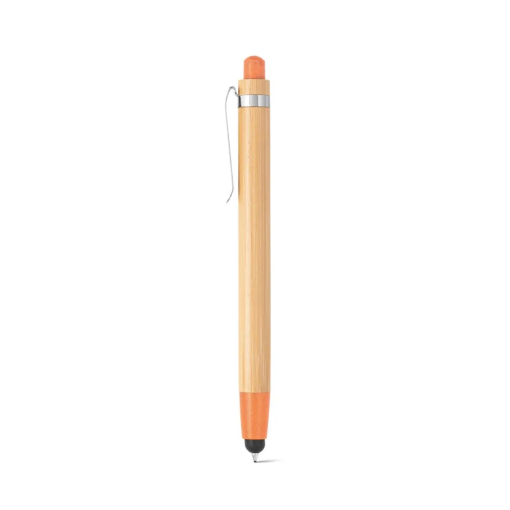 Esferográfica em bambu com ponteira touch e clipe em metal. Os elementos coloridos são em fibra de trigo e ABS. Até 1.5 km de escrita. ø11 x 139 mm