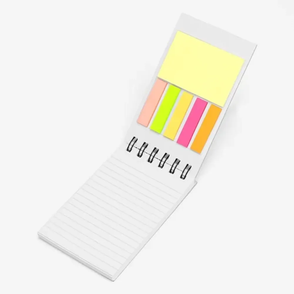Caderno para anotações rosa com capa dura. Conta com 100 folhas pautadas com fechamento wire-o e 5 cores com 25 folhas autocolantes. Tipo de gravação: Uma gravação em Silkscreen na capa. Dimensões do produto: 15x8,5cm Dimensões da embalagem: 150x85x20 mm (AxLxP) Peso da embalagem: 132 g Embalagem do produto: Caixa Preta