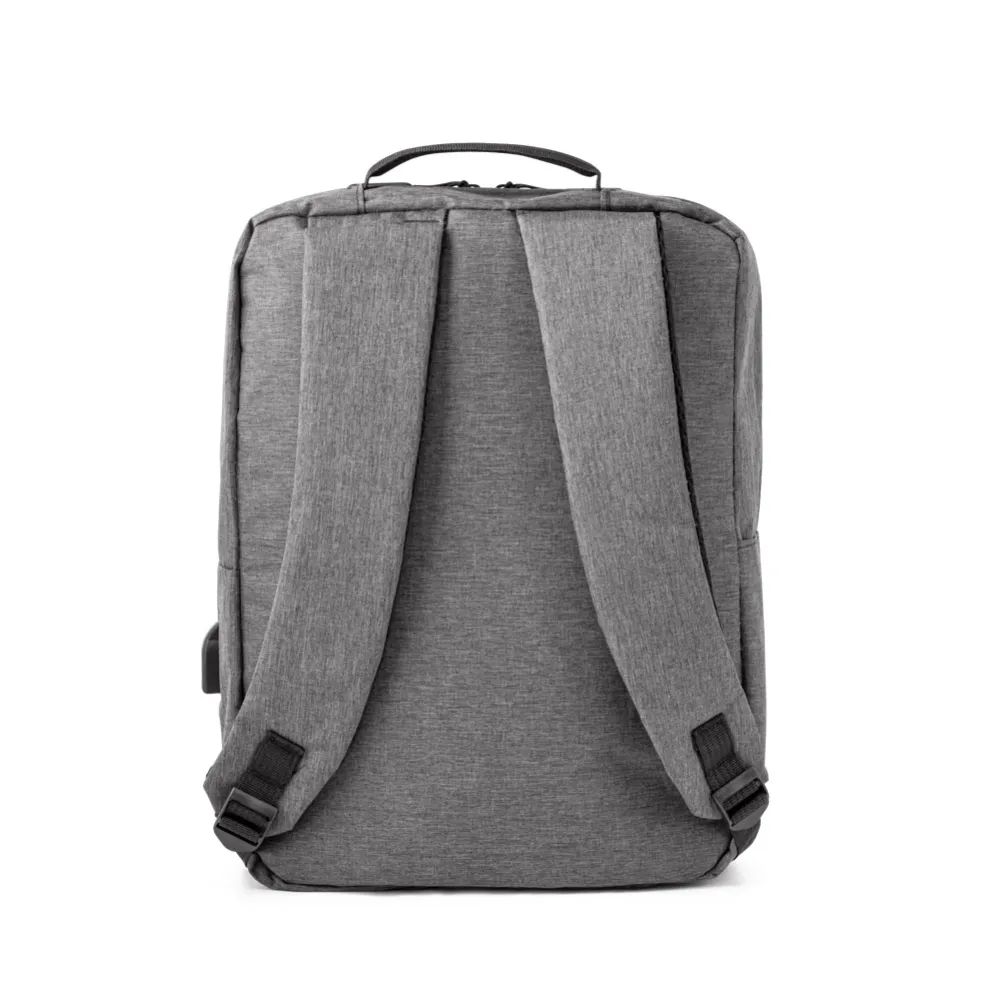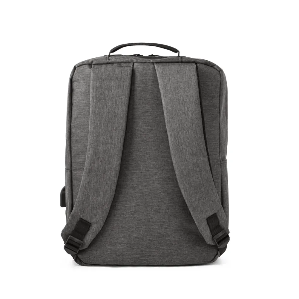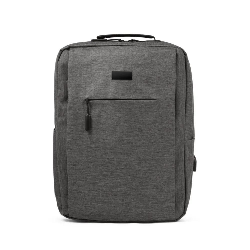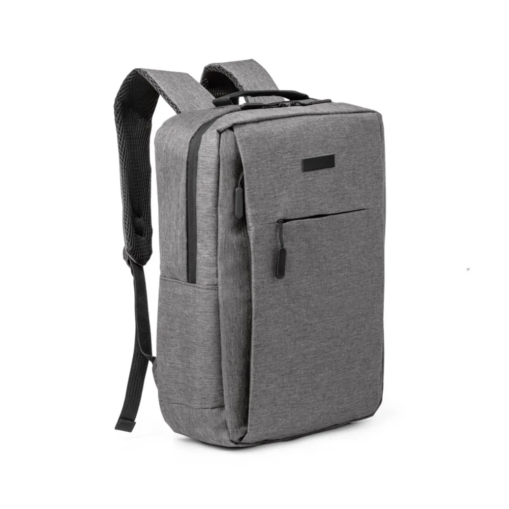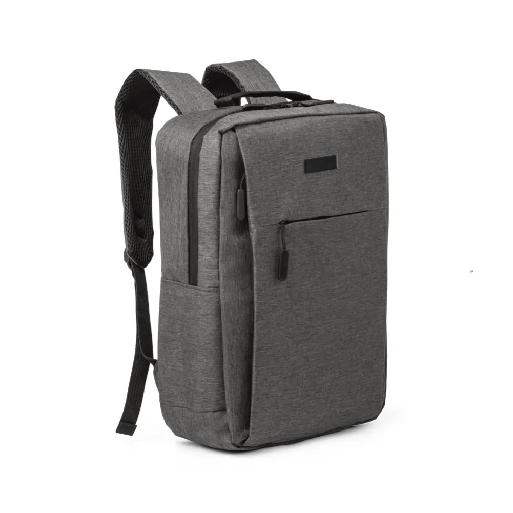 Mochila para notebook em 300D com placa de personalização. Tem 1 compartimento principal com bolso forrado para notebook até 15.6" e diversos bolsos interiores. Contém ainda bolso frontal, lateral e entrada USB. Parte posterior e alças são almofadadas. 300 x 420 x 120 mm