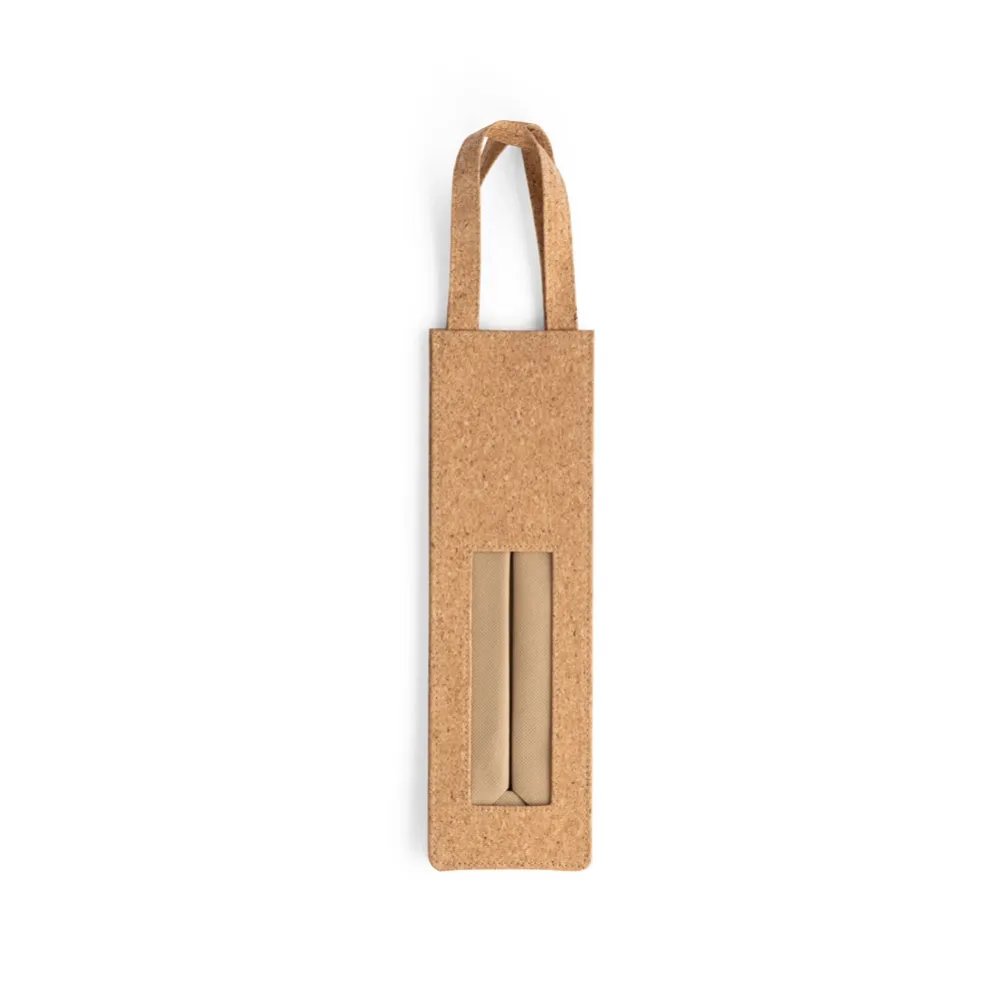Sacola em cortiça para 1 garrafa. Sacola amiga do ambiente com 2 alças e janela na parte frontal, ideal para oferta. 100 x 330 x 100 mm
