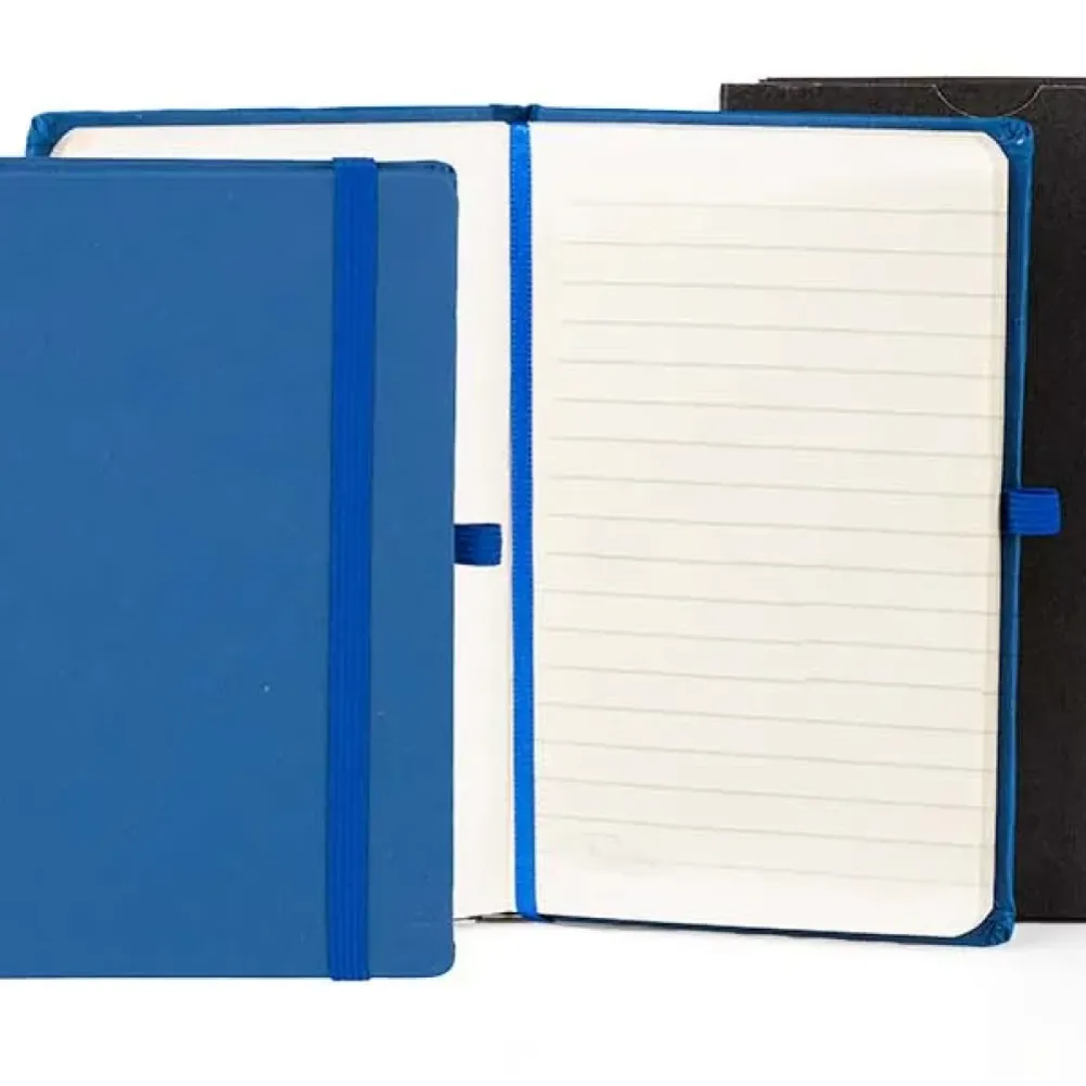 Caderno para anotações azul com capa dura. Conta com 80 folhas pautadas, marcador de página, porta caneta e elástico para fechamento. Gramatura da folha de 70 g/m2. Tipo de gravação: Uma gravação em Silkscreen na capa. Dimensões do produto: 14x21 cm Dimensões da embalagem: 155x215x18 mm (AxLxP) Peso da embalagem: 296 g Embalagem do produto: Caixa Preta