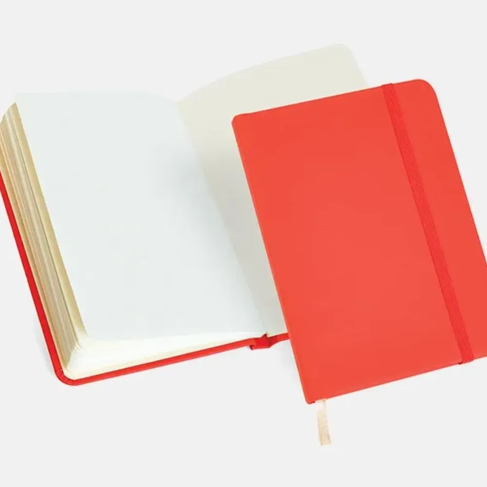 Caderno para anotações vermelho com capa dura. Conta com 80 folhas, porta caneta e elástico para fechamento. Gramatura da folha de 70 g/m2. Tipo de gravação: Uma gravação em Silkscreen na capa. Dimensões do produto: 17,5x12,5x1,5cm Dimensões da embalagem: 177x127x15 mm (AxLxP) Peso da embalagem: 202 g Embalagem do produto: Caixa Preta