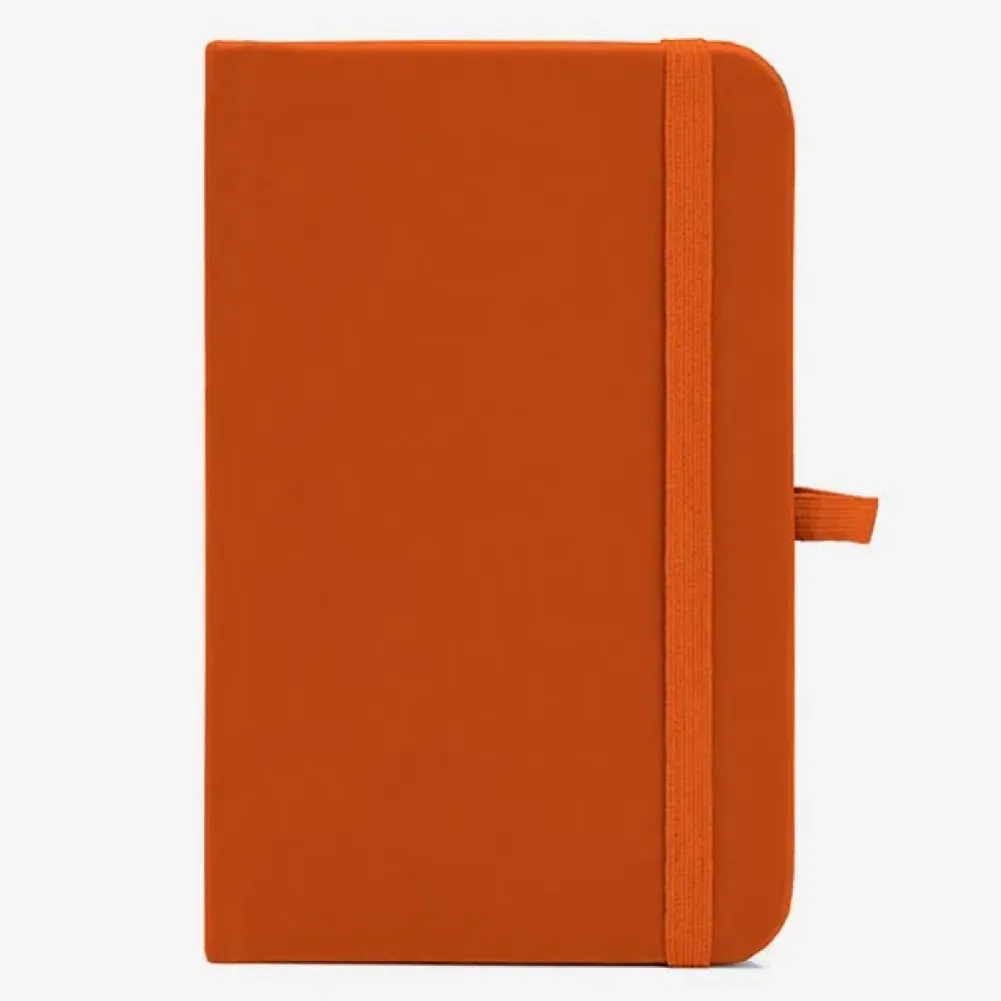 Caderno para anotações laranja com capa dura. Conta com 80 folhas pautadas, porta caneta e elástico para fechamento. Gramatura da folha de 70 g/m2 com 15x9 cm. Tipo de gravação: Uma gravação em Silkscreen na capa. Dimensões do produto: 15x9cm Dimensões da embalagem: 150x105x15 mm (AxLxP) Peso da embalagem: 150 g Embalagem do produto: Caixa Preta