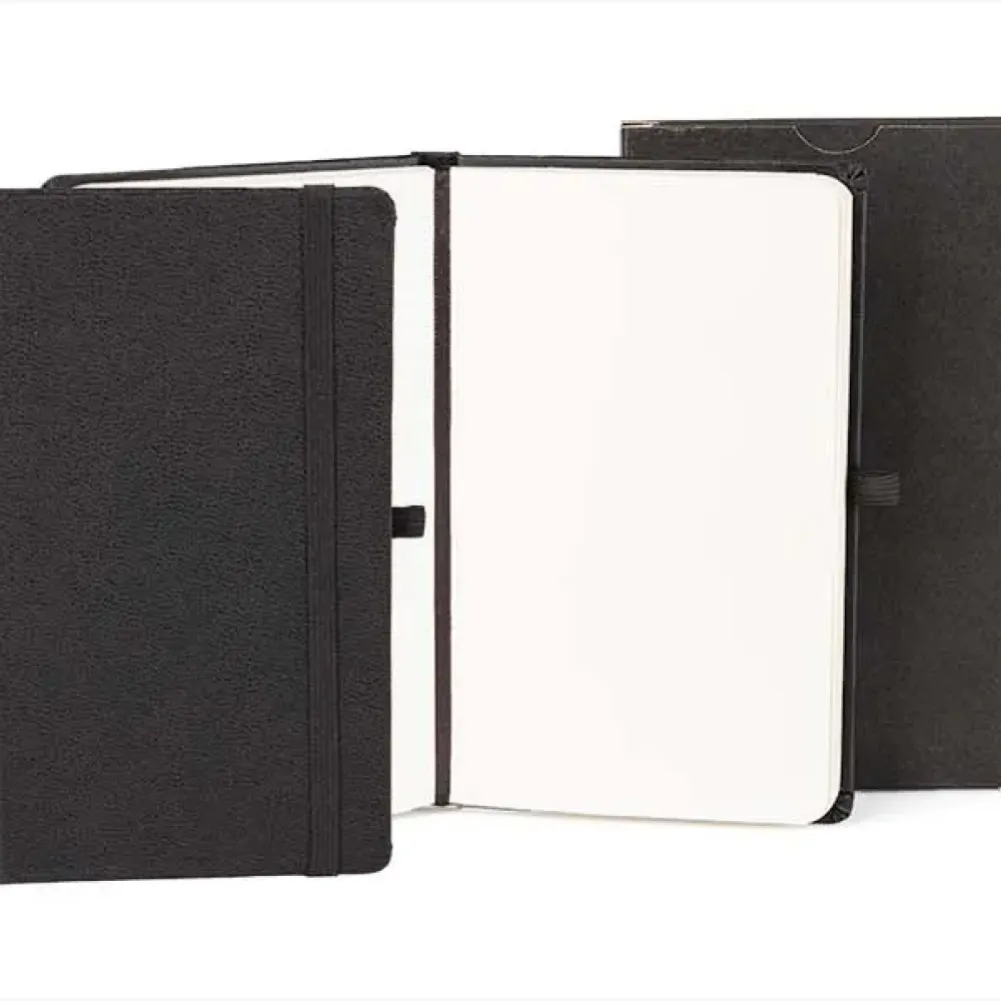 Caderno para anotações preto com capa dura. Conta com 80 folhas não pautadas, marcador de página, porta caneta e elástico para fechamento. Gramatura da folha de 70 g/m2. Tipo de gravação: Uma gravação em Silkscreen na capa. Dimensões do produto: 12,2x17 cm Dimensões da embalagem: 127x177x15 mm (AxLxP) Peso da embalagem: 224 g Embalagem do produto: Caixa Preta