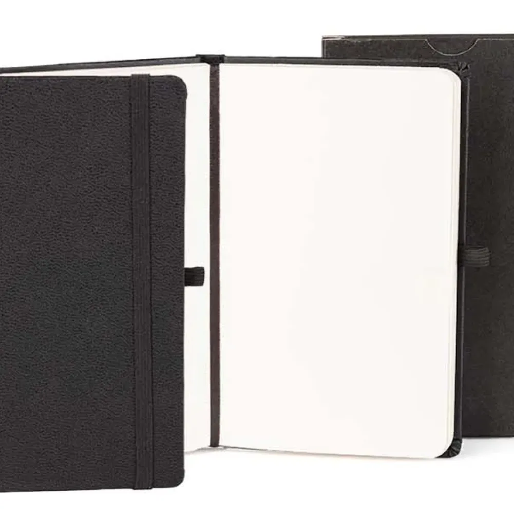 Caderno para anotações preto com capa dura. Conta com 80 folhas não pautadas, marcador de página, porta caneta e elástico para fechamento. Gramatura da folha de 70 g/m2. Tipo de gravação: Uma gravação em Silkscreen na capa. Dimensões do produto: 14x21 cm Dimensões da embalagem: 155x215x18 mm (AxLxP) Peso da embalagem: 296 g Embalagem do produto: Caixa Preta