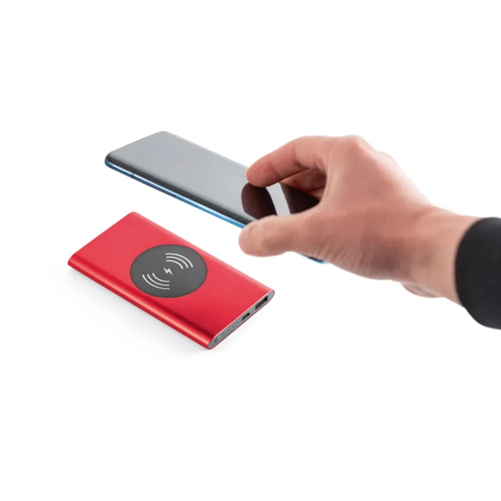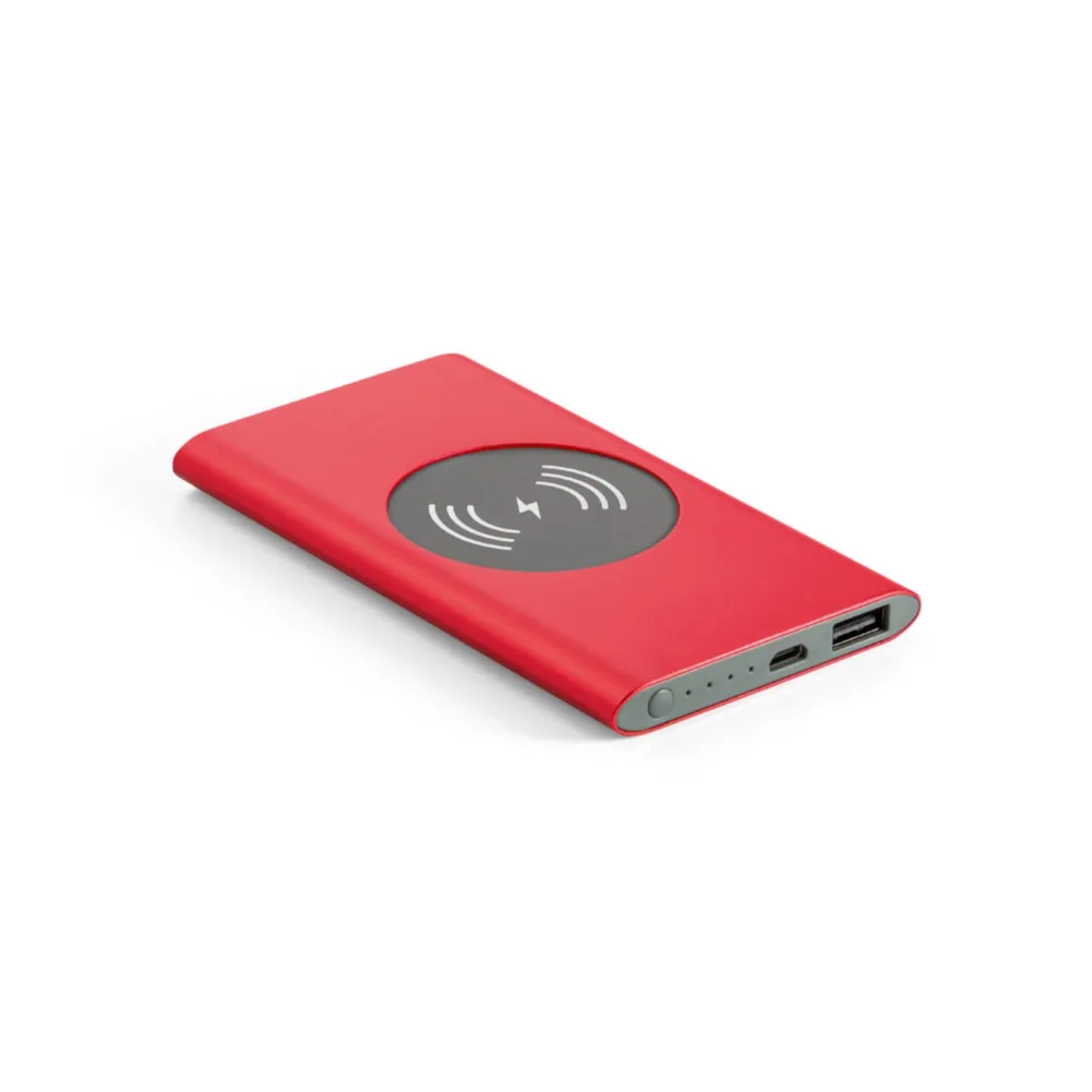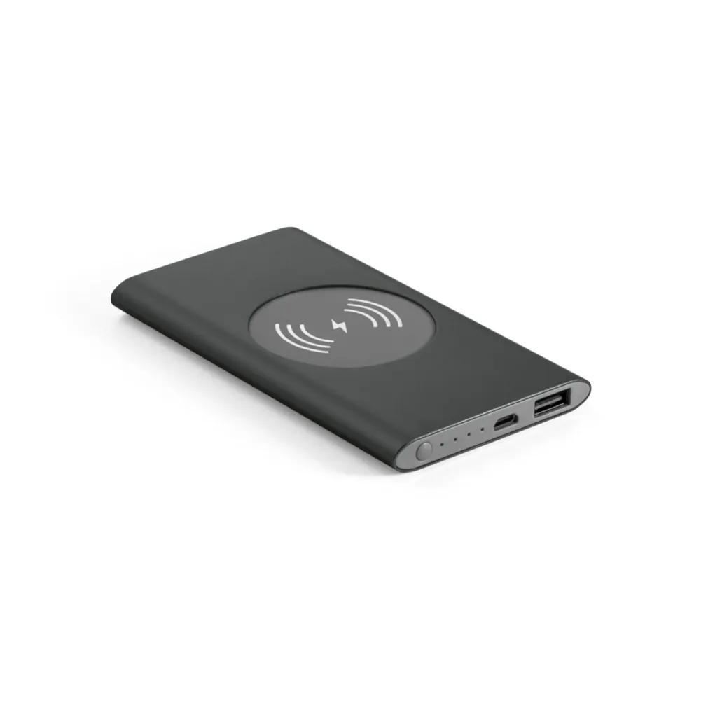 Bateria portátil e carregador wireless em alumínio com bateria de polímero de lítio. Contém uma capacidade de 4000 mAh e tempo de vida de ≥ 500 ciclos. Entrada 5V/2A e saída 5V/2A com potência de carregamento de 5W e LED indicador de carga. Incluso cabo USB / micro USB para carregar a bateria. Fornecida em caixa presente. 123 x 70 x 10 mm