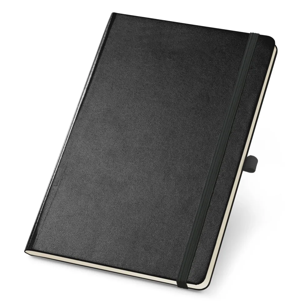 Caderno B6 com capa dura. Contém suporte para esferográfica, bolso interior e 80 folhas lisas em cor marfim. 120 x 180 mm