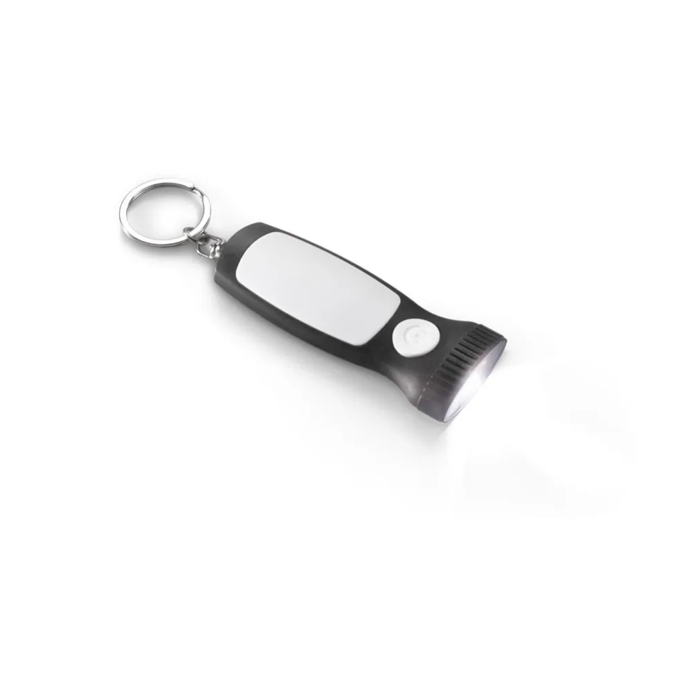 Chaveiro em ABS com luz LED. Incluso 3 pilhas AG10. 31 x 77 x 14 mm