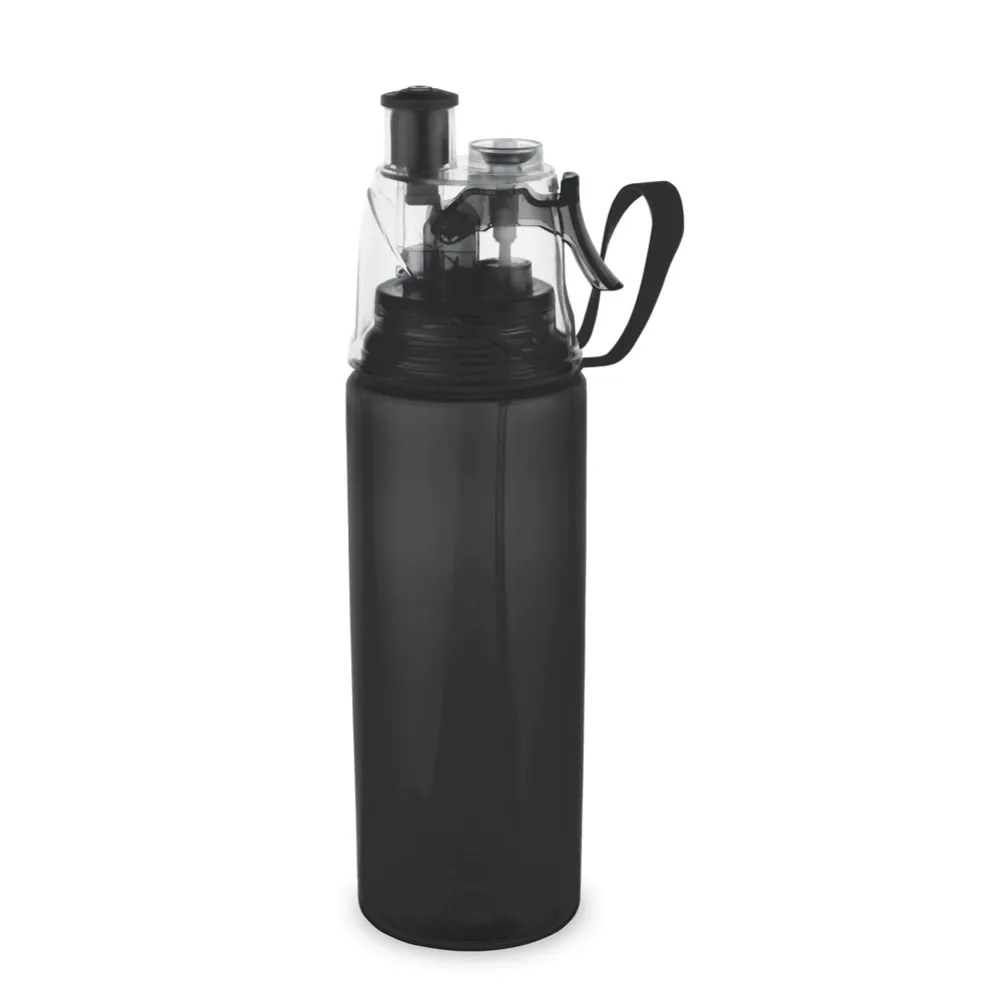 Squeeze em PS e tampa em ABS com bico "push-pull". Incluso vaporizador, alça para facilitar o transporte e capacidade até 600 mL. Certificação EU Food Grade. Caixa branca 94657 vendida opcionalmente. ø66 x 250 mm