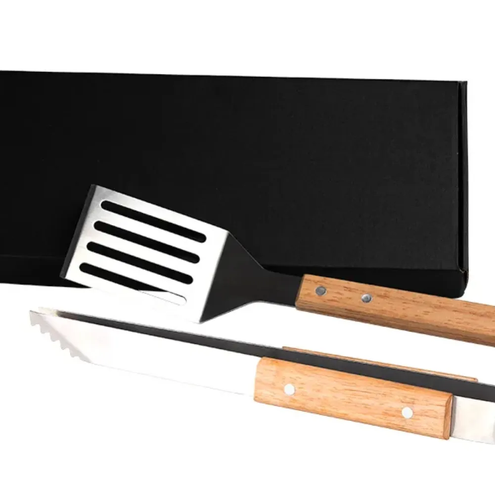 Conjunto de pegador e espátula perfurado em aço Inox/Madeira. Tipo de gravação: Uma gravação na espátula e no pegador. Dimensões do produto: Pegador: 33x4,5cm / Espátula: 33x7cm Dimensões da embalagem: 355x145x30 mm (AxLxP) Peso da embalagem: 363 g Embalagem do produto: Caixa preta
