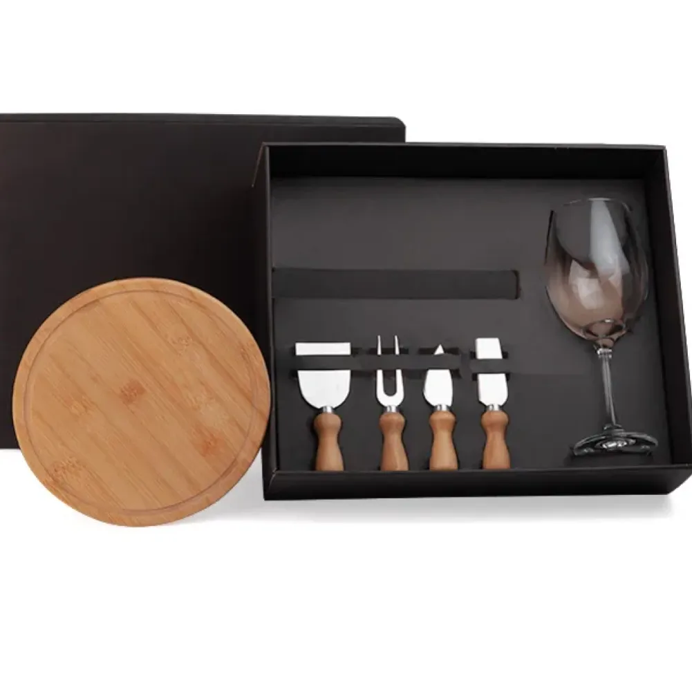 Conta com tábua em bambu; duas facas, uma espátula e um garfo para queijo em bambu/inox; taça em vidro com capacidade de 490 ml. Tipo de gravação: Uma gravação a Laser na taça, na tábua e na tampa da caixa. Dimensões do produto: Tábua: 21x1,2cm Dimensões da embalagem: 366x298x100 mm (AxLxP) Peso da embalagem: 980 g Embalagem do produto: Caixa Preta
