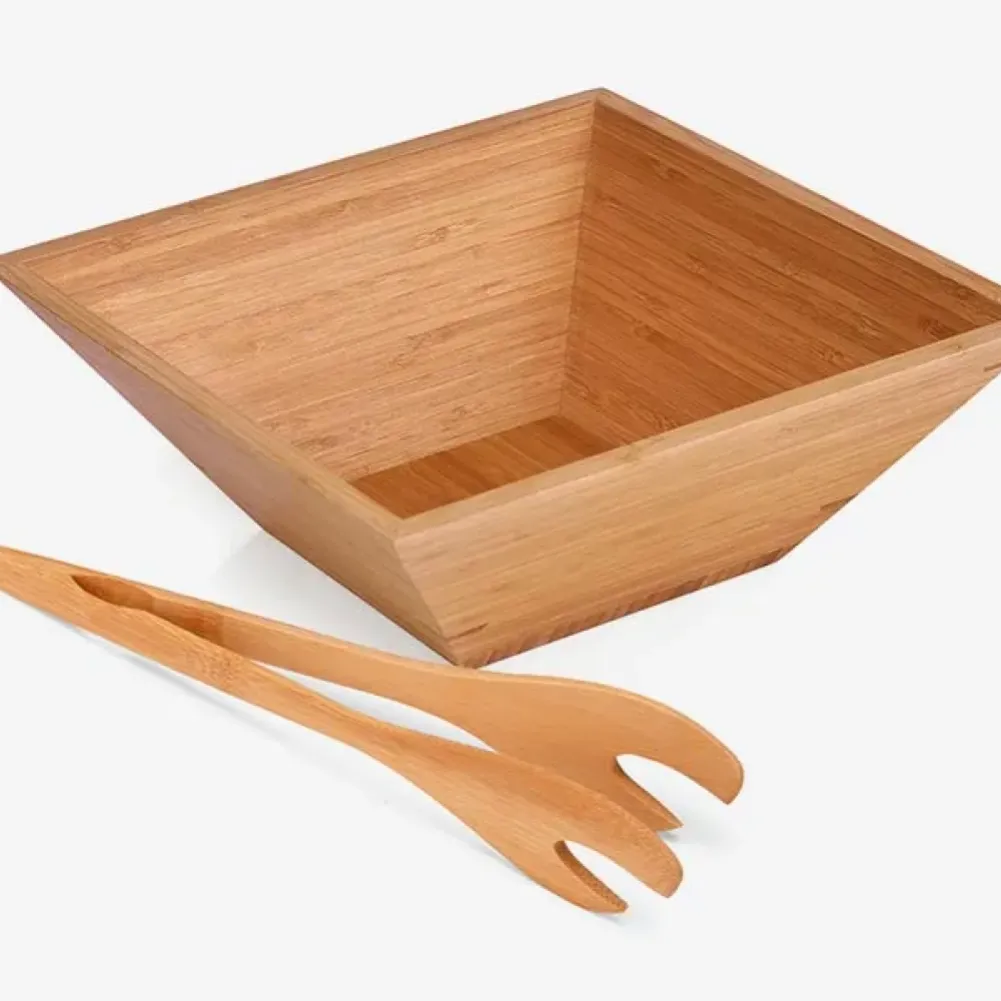 Conjunto para salada em Bambu com pegador de 30cm. Tipo de gravação: Uma gravação a Laser. Dimensões do produto: 28x28x10,5cm Dimensões da embalagem: 280x280x105 mm (AxLxP) Peso da embalagem: 1.070 g Embalagem do produto: Plástica