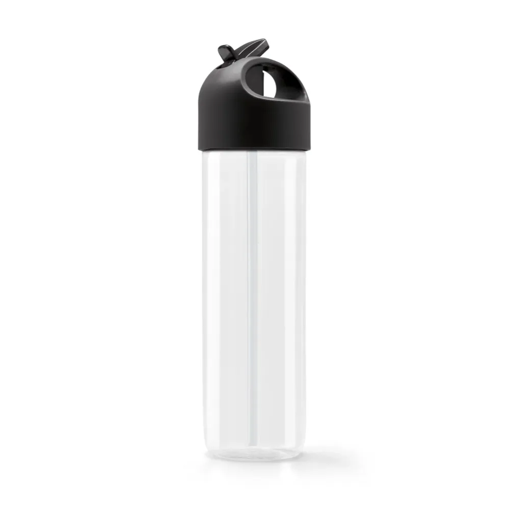 Squeeze em PS com tampa em PE com bico de canudo flexível (no interior) e de abertura fácil. Capacidade até 500 mL. Certificação EU Food Grade. Caixa branca 94651 vendida opcionalmente. ø70 x 230 mm
