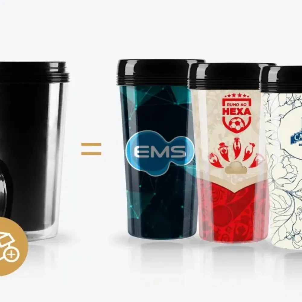 Copo plástico com tampa rosqueável em Polipropileno na cor preta, revestido em Plástico SAN e tampa rosqueável. A tampa possui trava de abertura e anel interno em Silicone para vedação Capacidade: 450 ml Tipo de gravação: Silk em até 2 cores chapadas - Impressão Digital em 3 cores ou mais. Dimensões do produto: 16,5x8Øcm Dimensões da embalagem: 175x90x90 mm (AxLxP) Peso da embalagem: 178 g Embalagem do produto: Caixa Preta