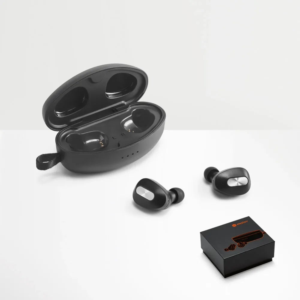 Os DESCRY são uns elegantes fone de ouvido wireless em metal e ABS. Suas características técnicas oferecem um objeto de elevada funcionalidade. Contêm uma transmissão sem fios BT v50 e têm um alcance até 10 m. Suas funcionalidades incluem: microfone, botão para atender chamadas e conexão à playlist do dispositivo móvel. O estojo de carregamento está incluso, é compatível com conector micro USB e tem uma capacidade de 500mAh. Os fones têm uma potência de 20Hz-20kHz e potência de 5mW (32Ω). A autonomia aproximada em uso é de 3 h e em standby de 300 h. Fornecidos em caixa presente. 31 x 78 x 38 mm | Caixa de carregamento: 79 x 40 x 32 mm | Caixa: 128 x 110 x 58 mm