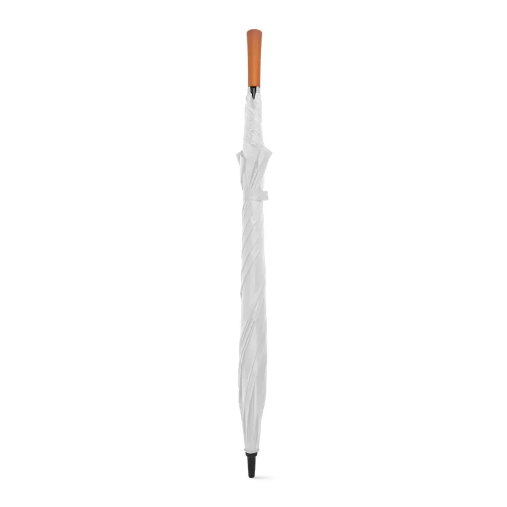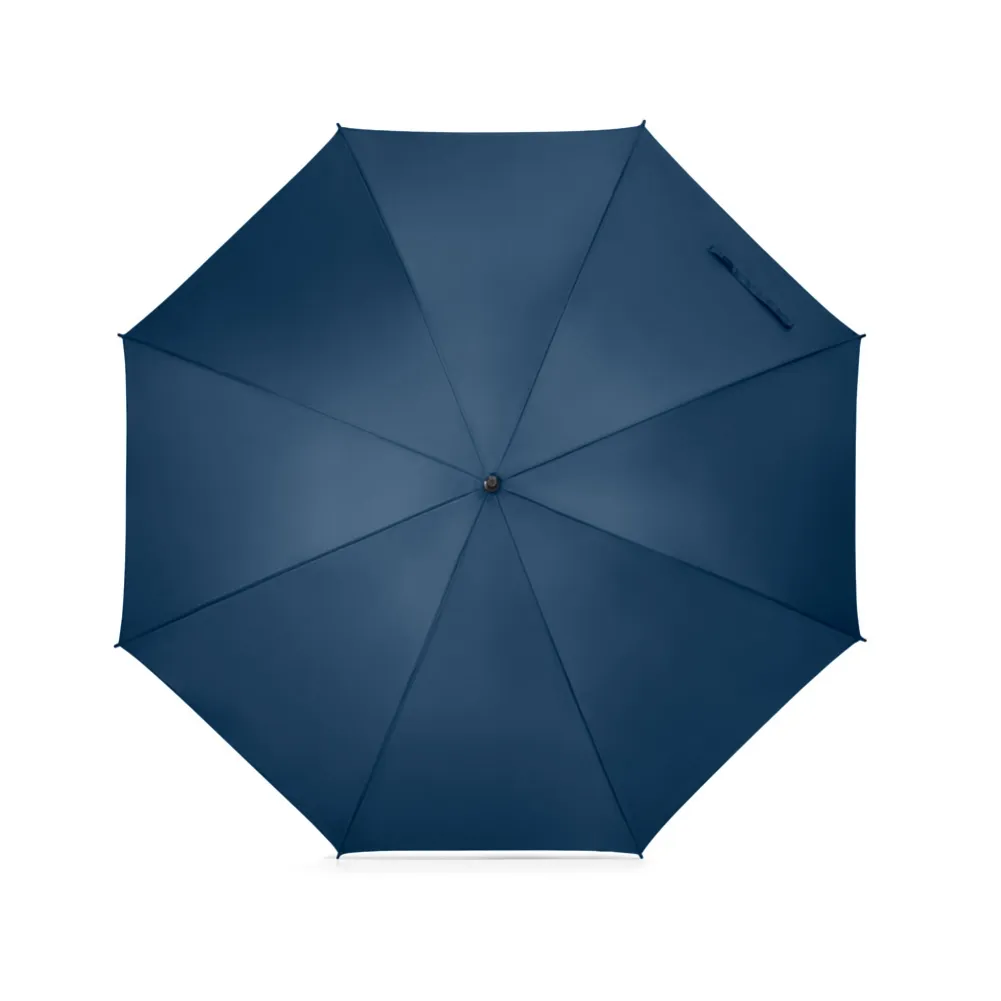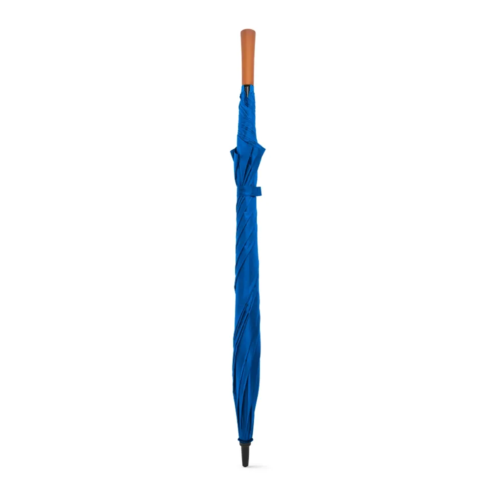 Guarda-chuva grande de portaria em 190T pongee. Varetas e haste em fibra de vidro e pega em madeira. ø1375 x 855 mm