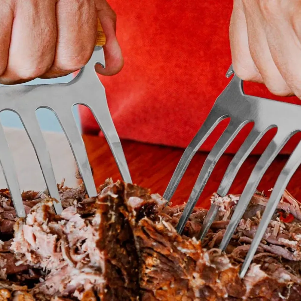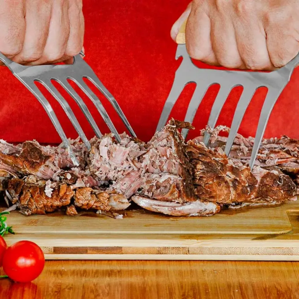 GARFOS COM 5 DENTES EM BAMBU - INOX - 11,5X14,5CM - 2 PÇS
