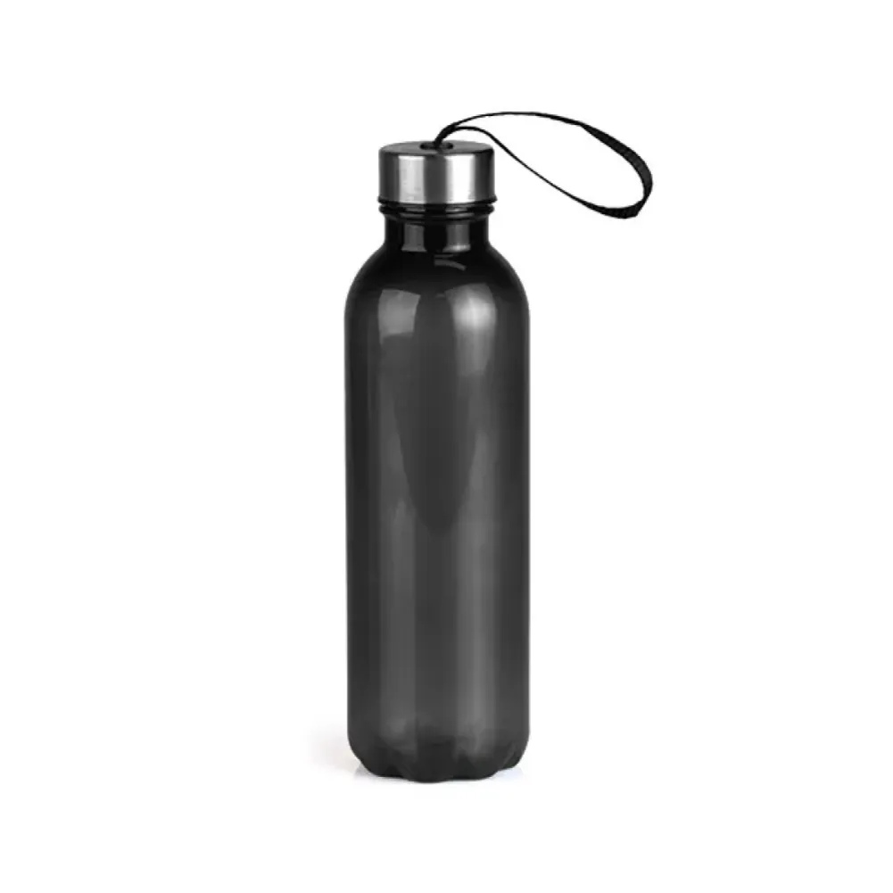 Garrafa preta em PET. Conta com tampa rosqueável em Aço Inox com cordão. Livre de BPA. Capacidade: 600ml Tipo de gravação: Uma gravação em Silkscreen. Dimensões do produto: Capacidade: 600ml Dimensões da embalagem: 230x65x0 mm (AxLxP) Peso da embalagem: 102 g Embalagem do produto: Plástica