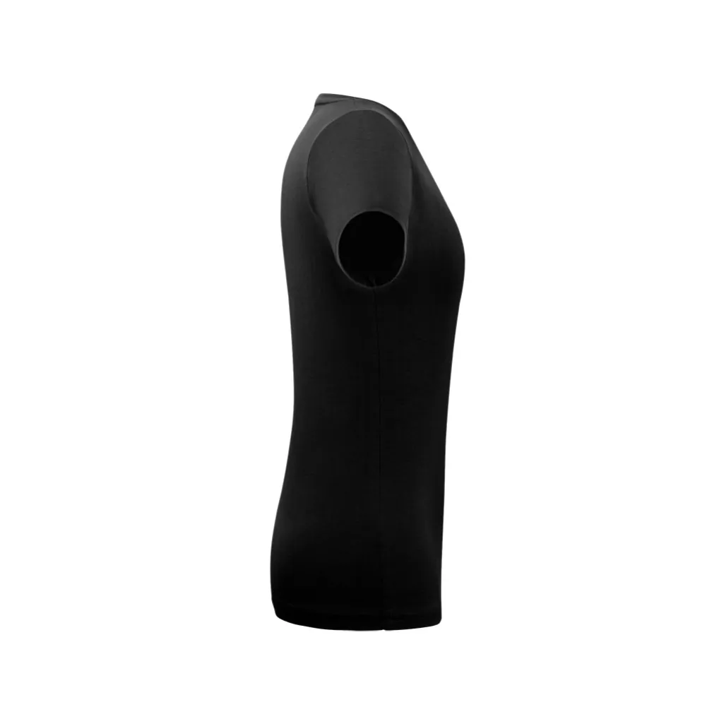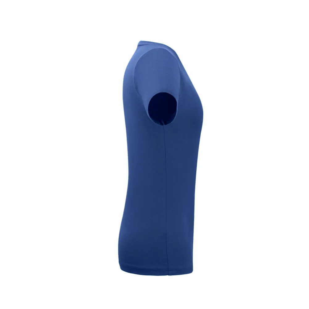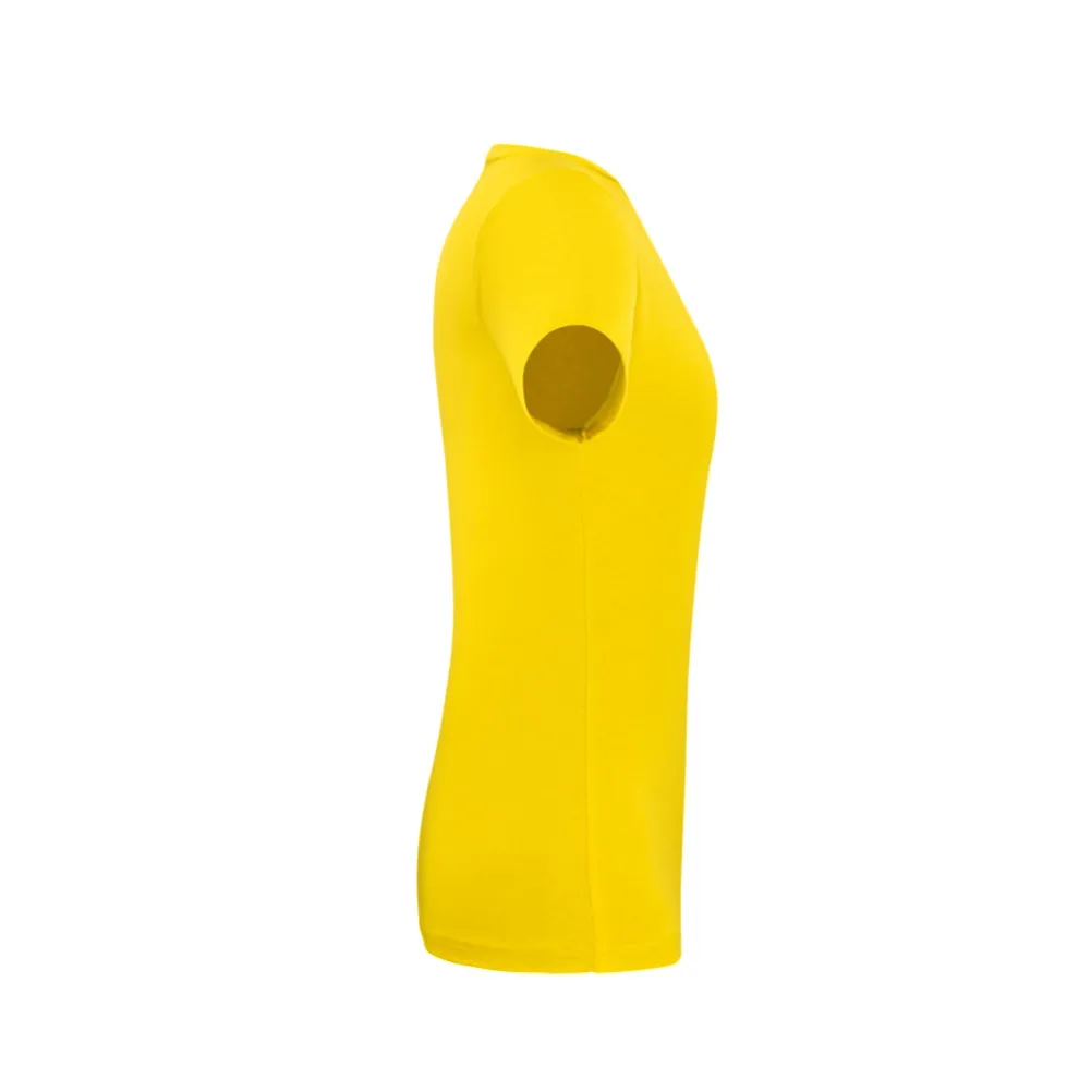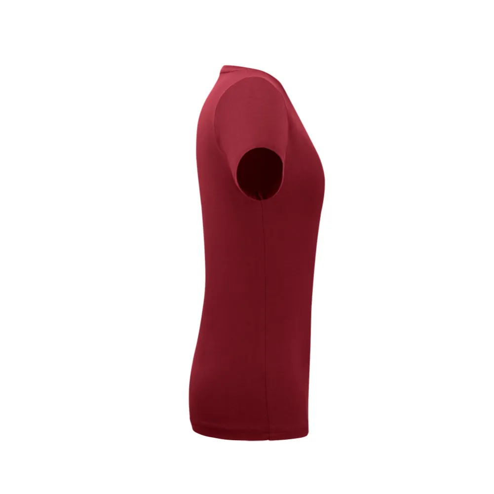 Camiseta feminina de corte cinturado em malha 100% algodão (135 g/m2) com fio 30/1 misto. Com gola em ribana 1x1 com fita de reforço e com costura dupla nas mangas, barra de fundo e laterais. Tamanhos: P, M, G, GG