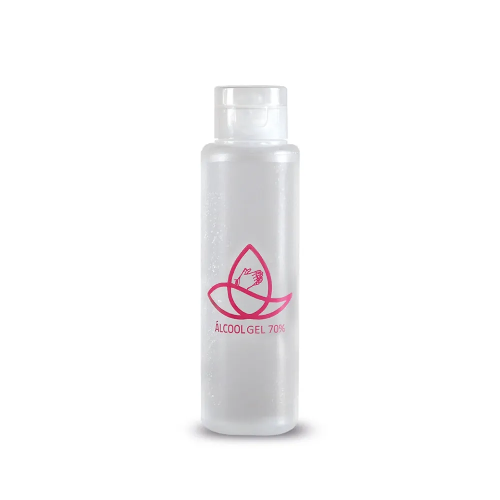Álcool em Gel 100ml 70% antisséptico para higienização a seco das mãos e braços. Combate 99.9% dos germes e bactérias e hidrata a pele com solução protetora da pele, diminuindo o impacto do ressecamento provocado pelo álcool. Embalagem transparente em PP. Ideal para levar sempre na bolsa ou mochila e usar em qualquer lugar. Instruções de uso: Aplicar uma pequena quantidade de Álcool Gel na palma da mão e espalhar até total absorção, sem enxágue. É recomendada a sua utilização para completar a limpeza rotineira das mãos. Dermatologicamente testado e certificado pela ANVISA. Disponível personalização do frasco com logomarca. ø36 x 125 mm