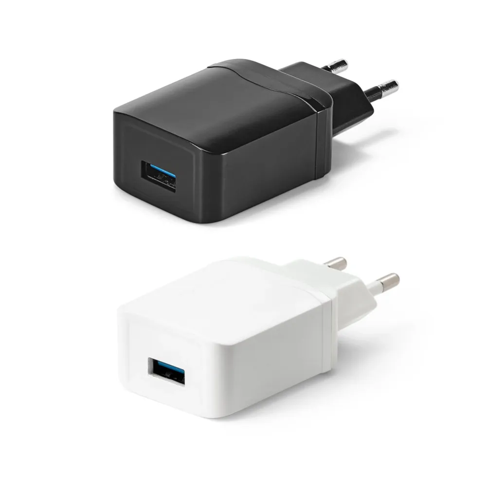 Adaptador USB em ABS com entrada USB 20 Possibilita carregamento rápido 30. Carregador tem entrada de 100V-250V/035A e saída de 5V/31A, 9V/20A, 12V/15A com potência de 18W. 42 x 25 x 85 mm