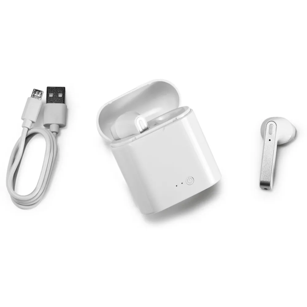 Fone de ouvido wireless stereo em ABS. Transmissão sem fios BT v50 com autonomia aproximada de 6 horas. Função para atender chamadas, controle de volume e conexão à playlist do dispositivo móvel. Incluso cabo USB / micro USB para carregar. Fornecidos em caixa com função de carregador. 71 x 55 x 28 mm | Auricular: 47 x 21 x 21 mm