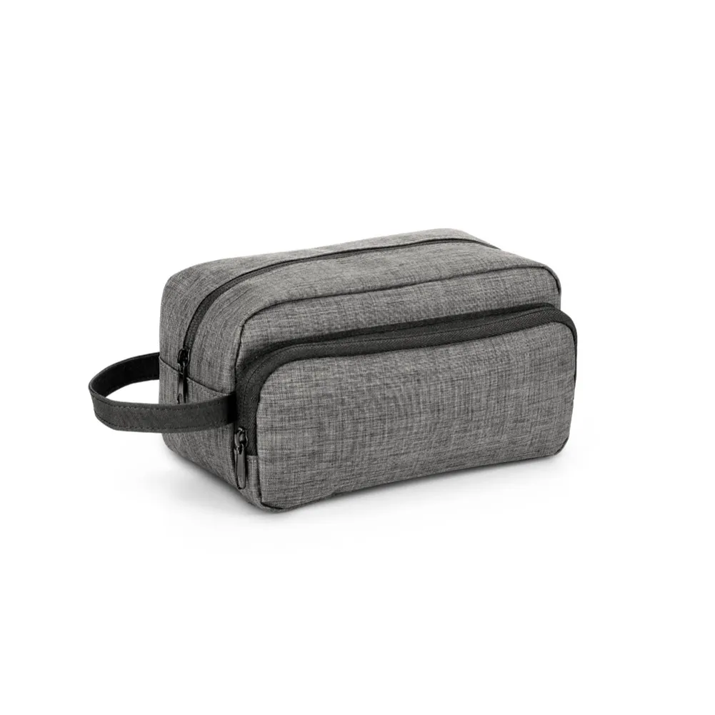 Bolsa de cosméticos em 300D de alta densidade com pega, bolso frontal, interior forrado e zíper. 220 x 115 x 115 mm