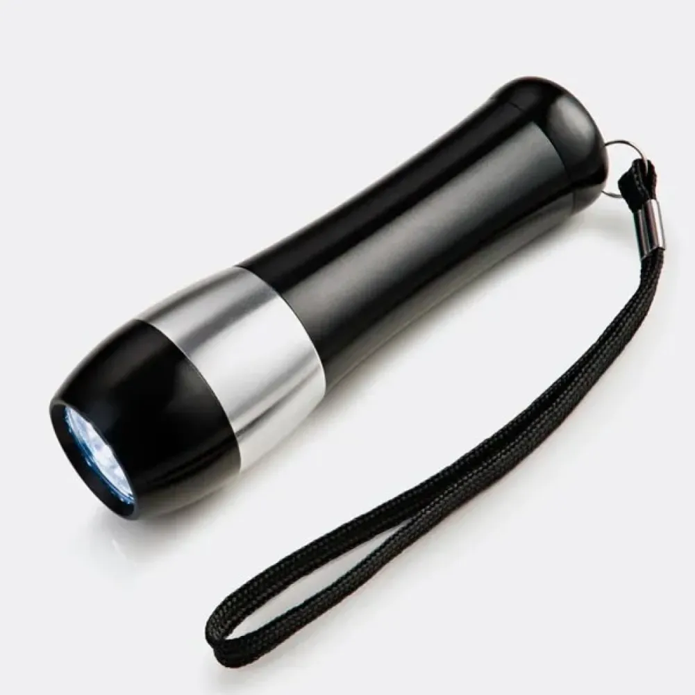 LANTERNA PRETA E PRATA EM ALUMÍNIO PARA PILHAS AAA