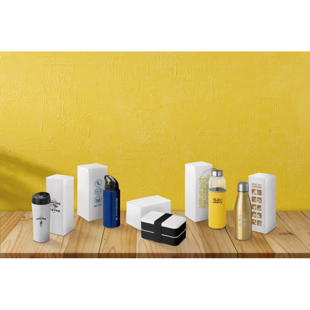 Squeeze em alumínio com bico de canudo flexível em PP (no interior) e capacidade até 670 mL. Certificação EU Food Grade. Caixa branca 94652 vendida opcionalmente. ø73 x 217 mm
