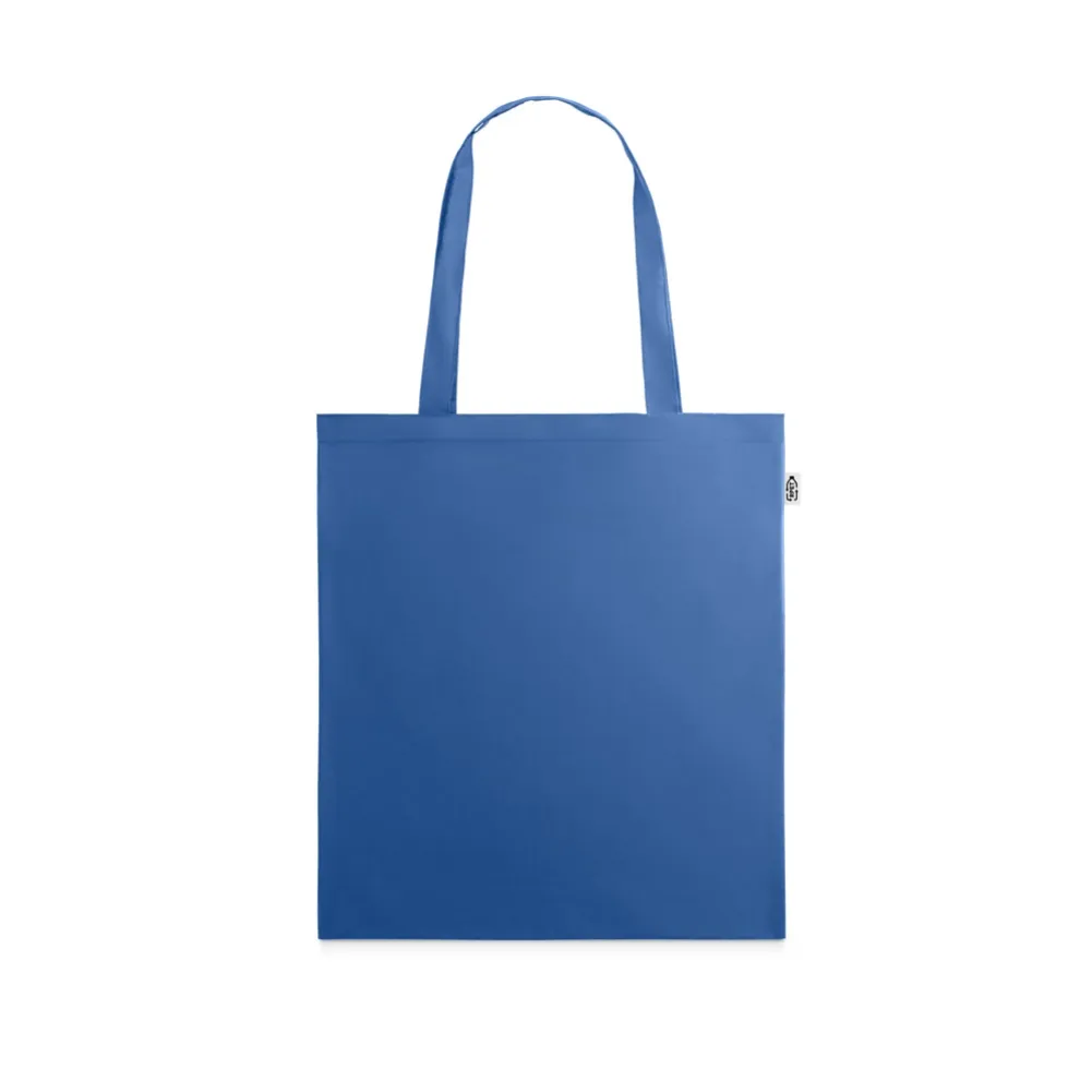 Sacola em rPET 190T. Produzida a partir de plástico reciclado contribuindo para a redução dos resíduos no meio ambiente. Alças de 60 cm. 380 x 420 mm
