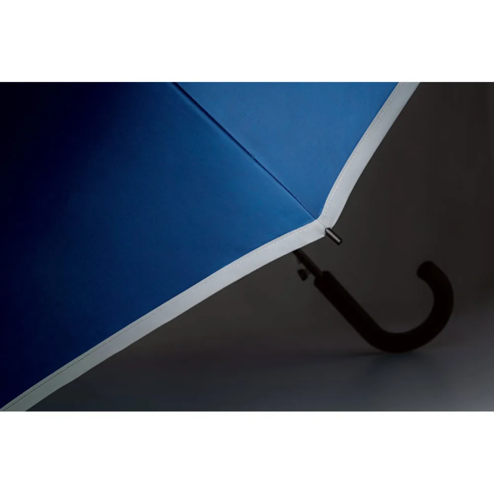 Guarda-chuva em poliéster com faixa refletora. Pega revestida a borracha e abertura automática. ø960 x 815 mm