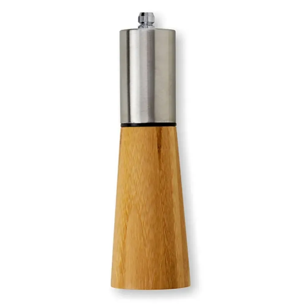 Moedor de sal grosso e pimenta em Bambu e Aço Inox. Conta com haste interna em alumínio e mecanismo em cerâmica. Tipo de gravação: Uma gravação a Laser no Bambu. Dimensões do produto: Ø5,5x18,5 Dimensões da embalagem: 58x58x190 mm (AxLxP) Peso da embalagem: 192 g Embalagem do produto: Caixa Preta