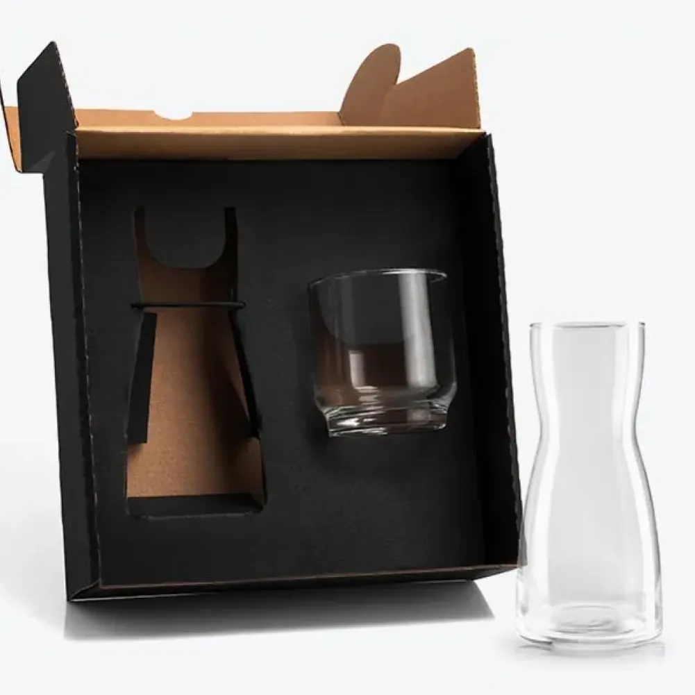 Kit contendo uma moringa de vidro e um copo acomodados em embalagem para presentear. Tipo de gravação: Uma gravação a Laser nas duas peças. Dimensões do produto: Capacidade da moringa: 500mlCapacidade do copo: 290ml Dimensões da embalagem: 230x230x90 mm (AxLxP) Peso da embalagem: 537 g Embalagem do produto: Caixa Preta