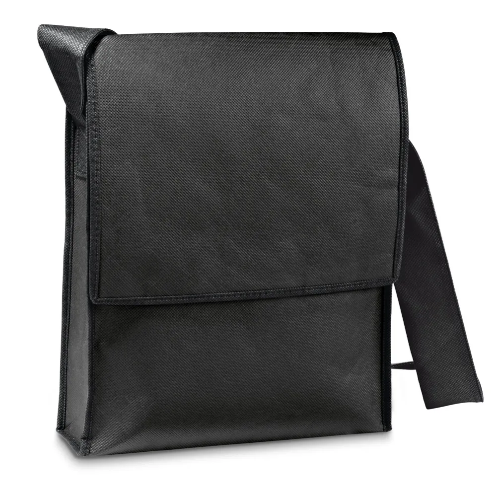 Pasta à tiracolo em non-woven (100 g/m²) com fechamento em velcro e alça de 135 cm. 260 x 330 x 60 mm