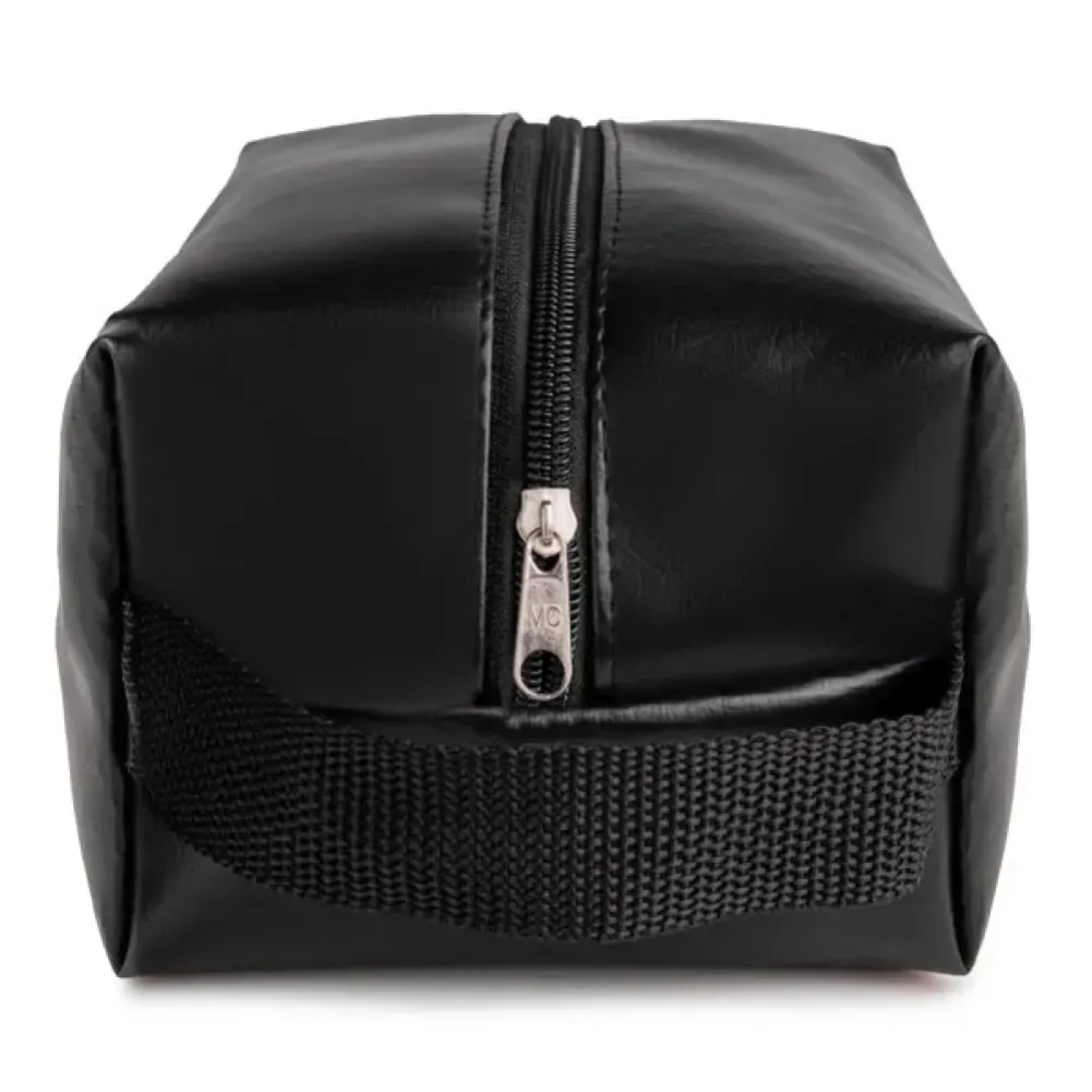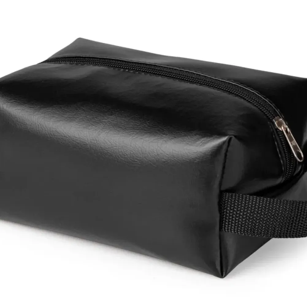 Necessaire com alça em material sintético na cor preta. Tipo de gravação: Gravação em Silkscreen. Dimensões do produto: 17,5x14x10cm Dimensões da embalagem: 175x140x0 mm (AxLxP) Peso da embalagem: 72 g Embalagem do produto: Plástica