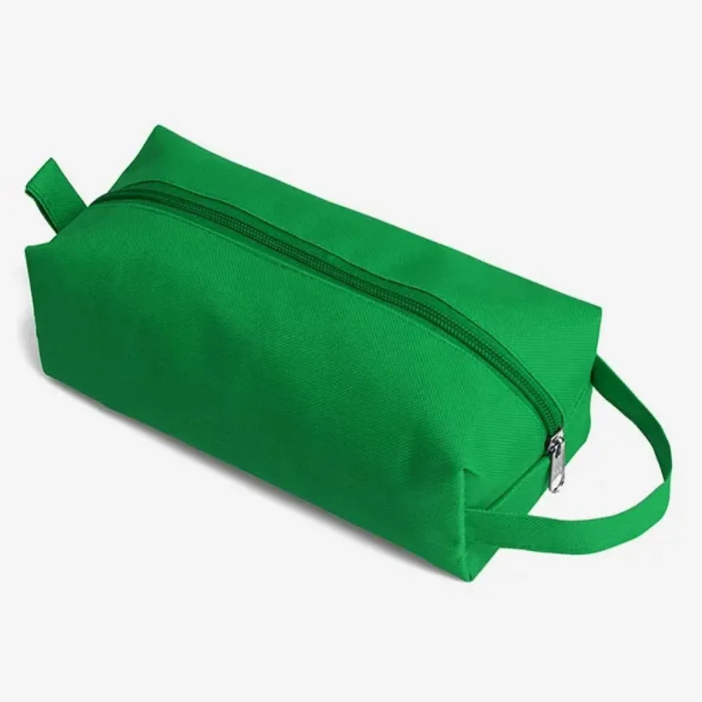 Necessaire em Nylon verde. Conta com fechamento em zíper e alça de mão. Tipo de gravação: Uma gravação em Silkscreen. Dimensões do produto: 22x11x7,5cm Dimensões da embalagem: 220x110x0 mm (AxLxP) Peso da embalagem: 47 g Embalagem do produto: Plástica.