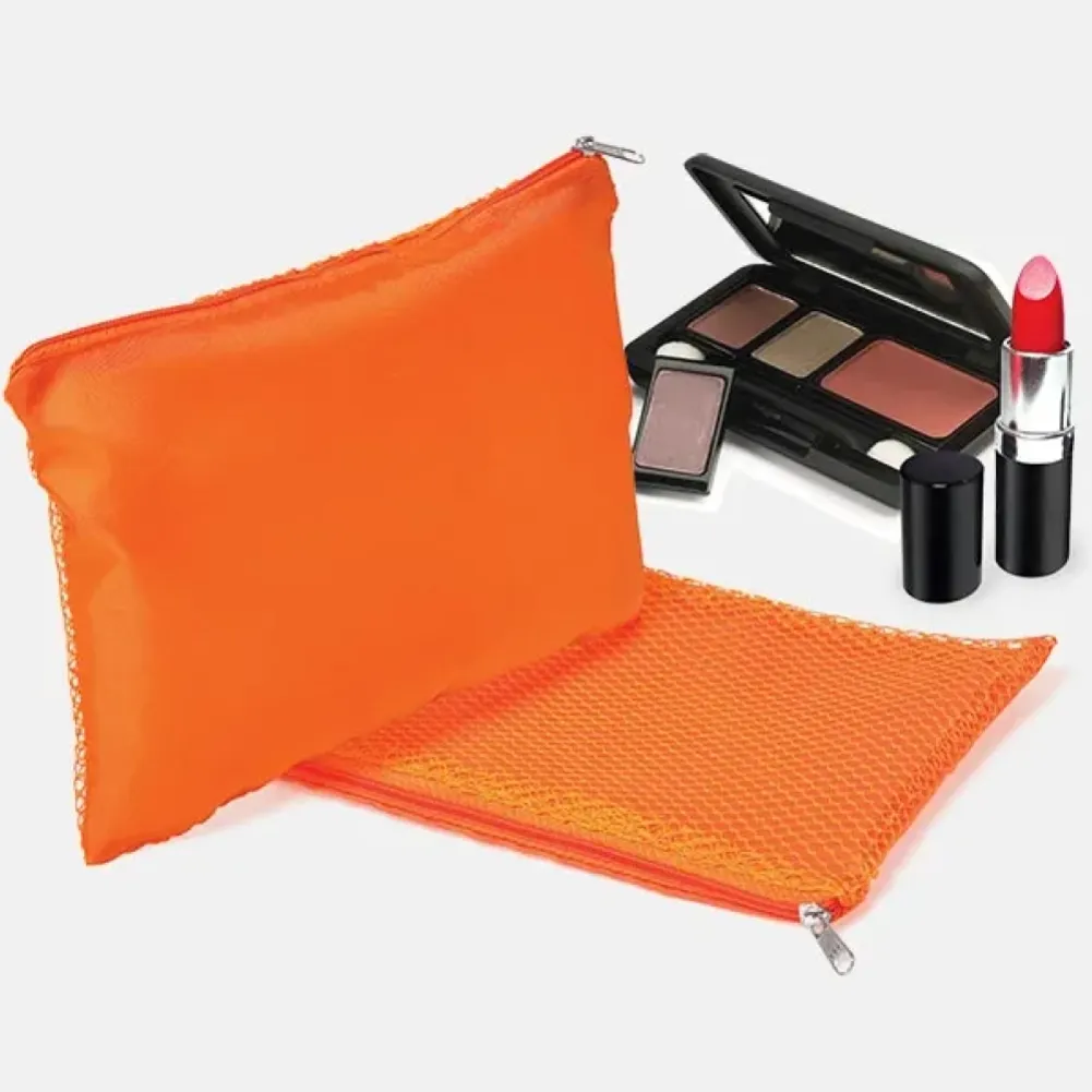 Necessaire em Nylon/Polyester laranja. Conta com fechamento em zíper. Tipo de gravação: Uma gravação em Silkscreen. Dimensões do produto: 21,5x15,5cm Dimensões da embalagem: 225x160x5 mm (AxLxP) Peso da embalagem: 10 g Embalagem do produto: Plástica embalada de 10 em 10