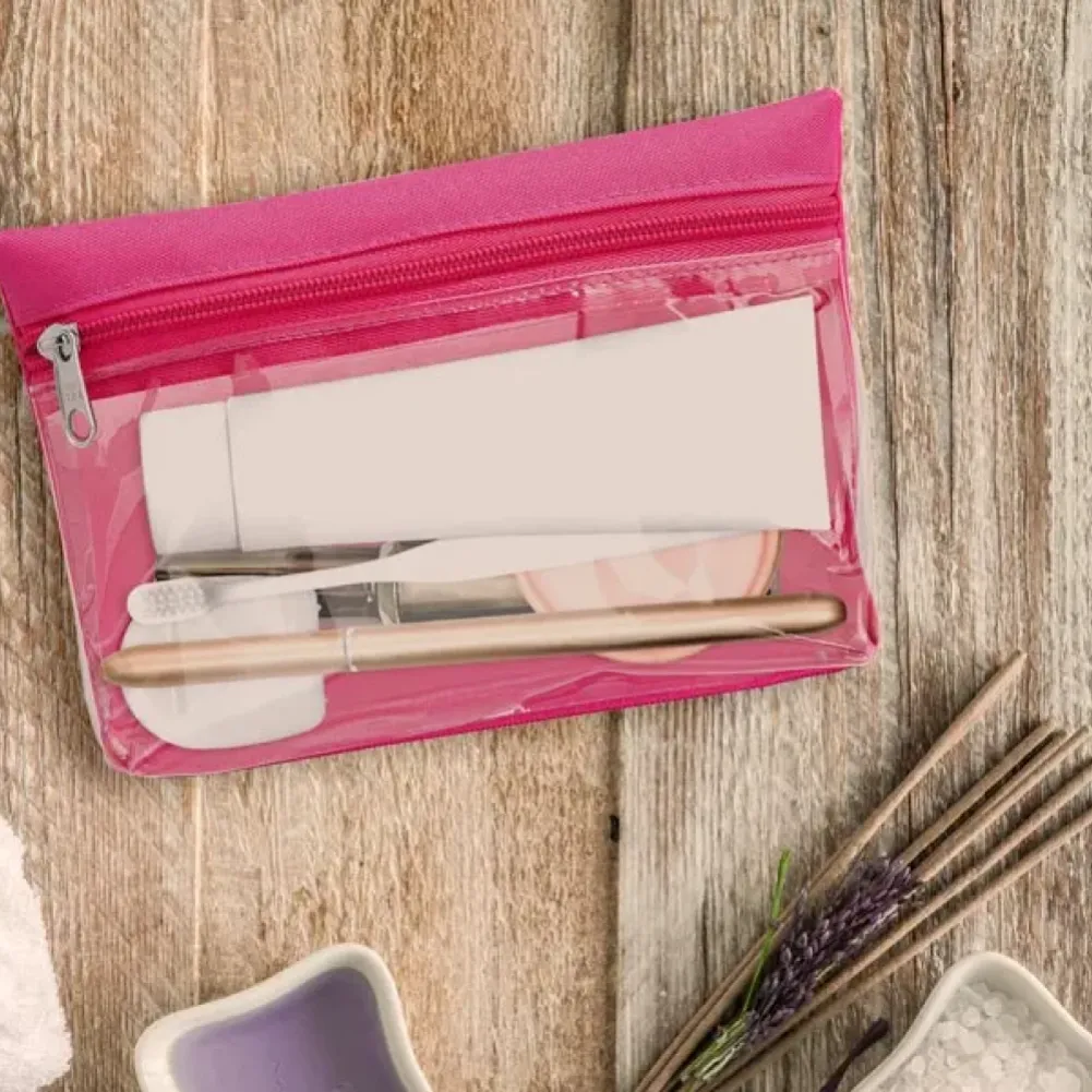 Necessaire confeccionada em Oxford/PVC rosa. Conta com fechamento em zíper. Tipo de gravação: Uma gravação em Silkscreen. Dimensões do produto: 19x12,5cm Dimensões da embalagem: 190x125x0 mm (AxLxP) Peso da embalagem: 30 g Embalagem do produto: Plástica