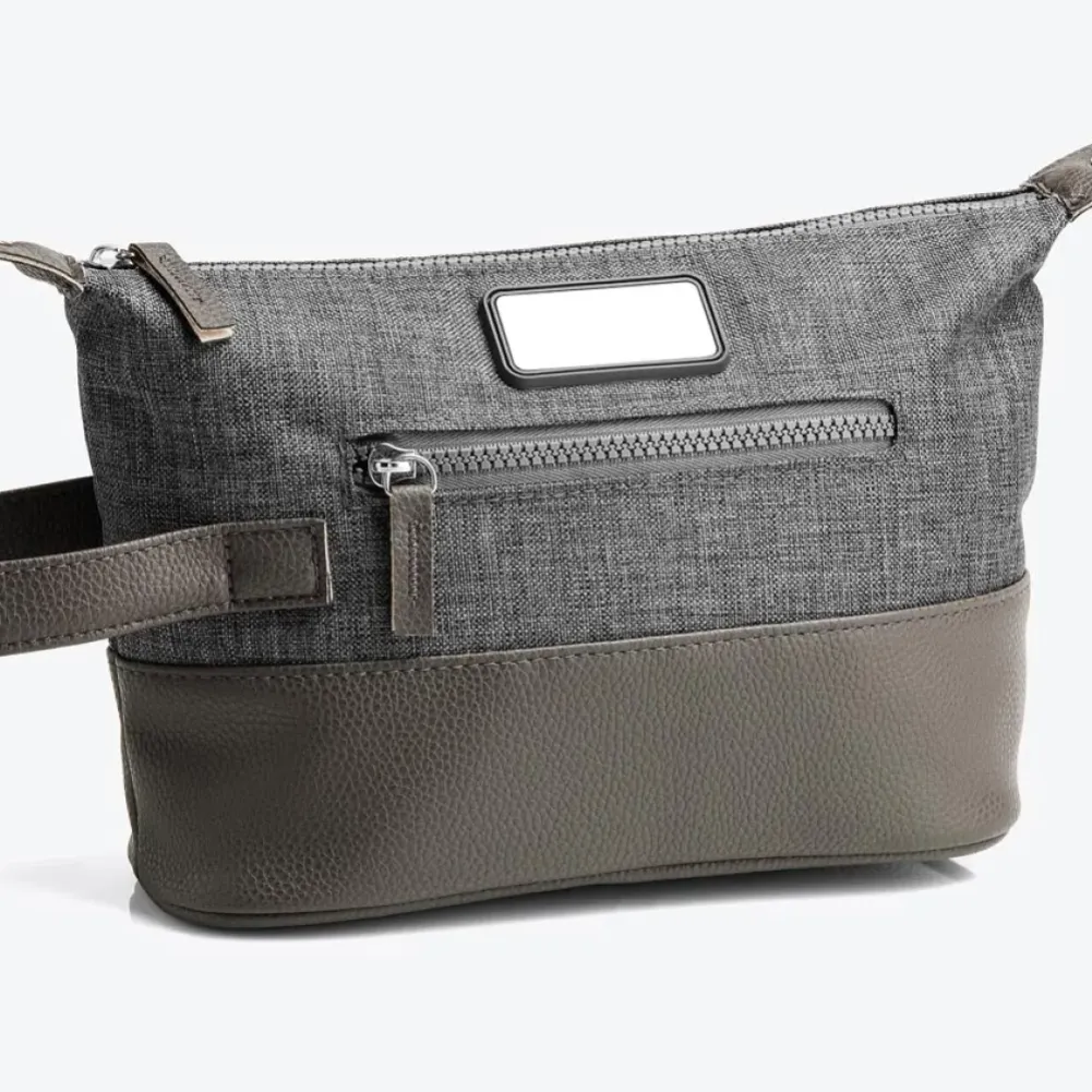 NECESSAIRE EM POLIESTER 300D COM DETALHES EM COURO - CINZA